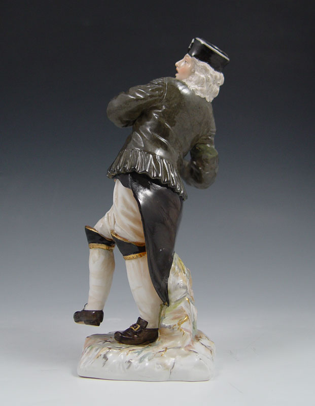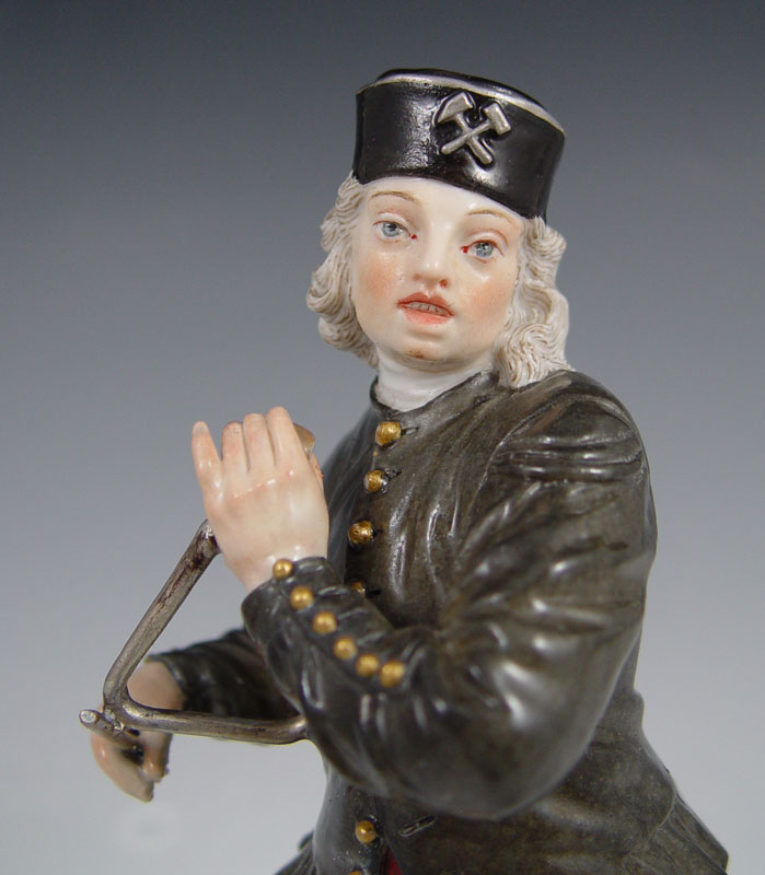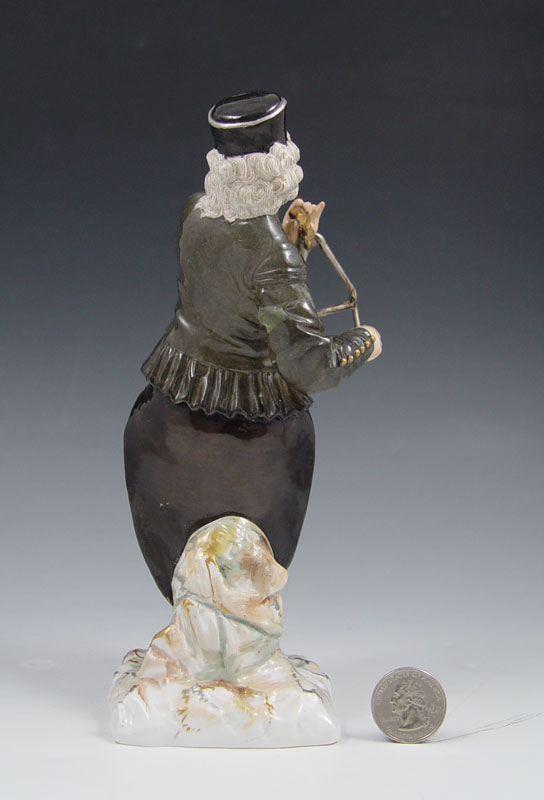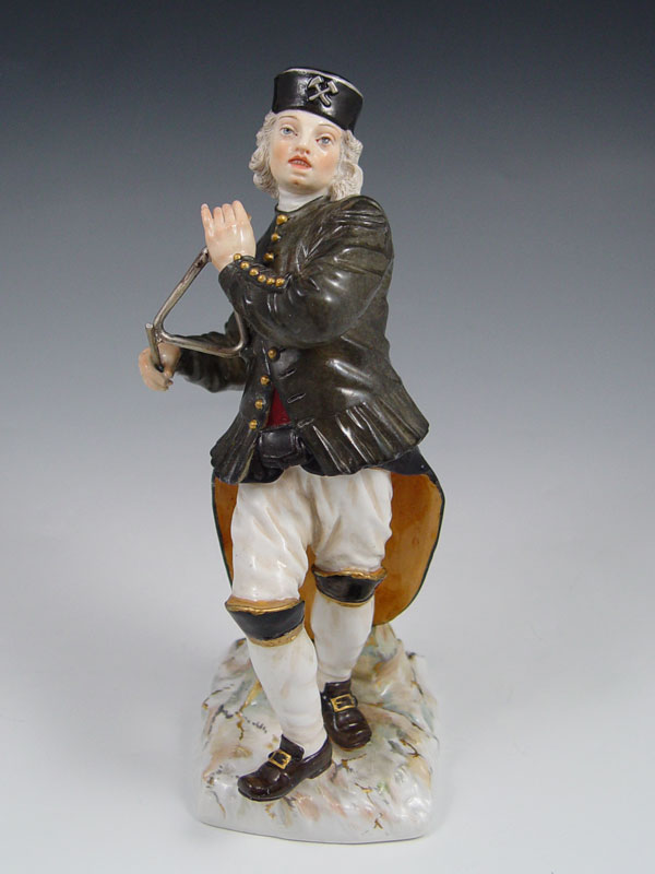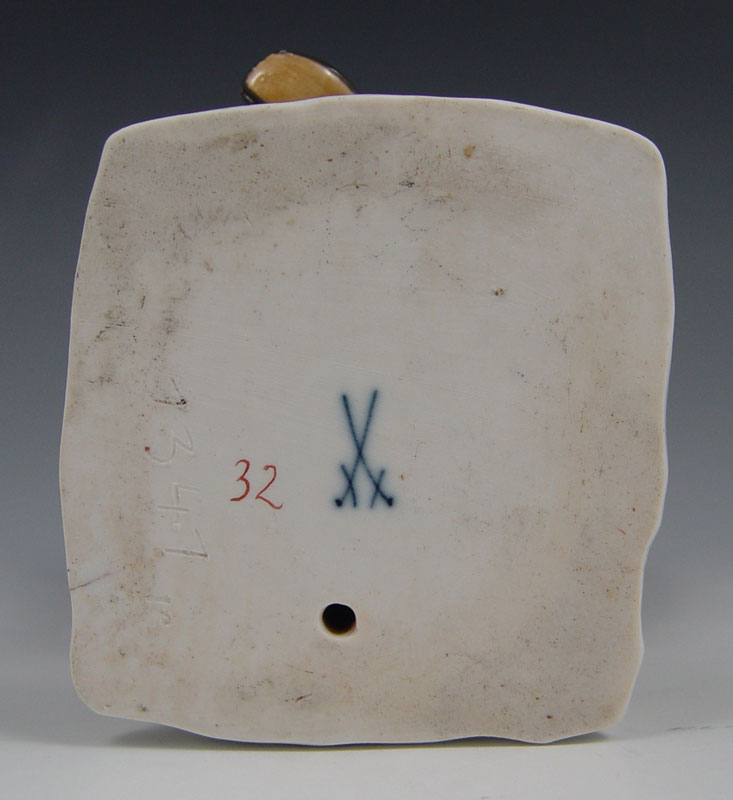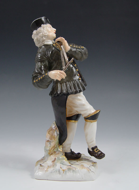 MEISSEN PORCELAIN FIGURE OF MUSICIAN WITH TRIANGLE: Blue cross sword mark, unglazed underside. 8''H.