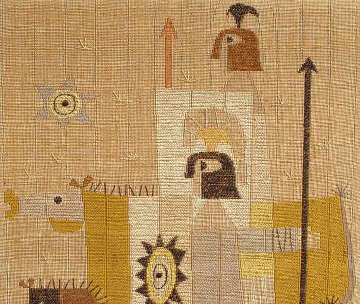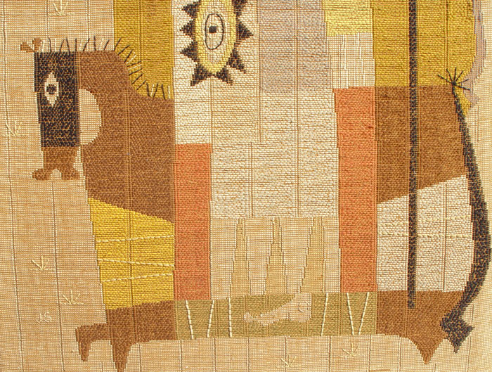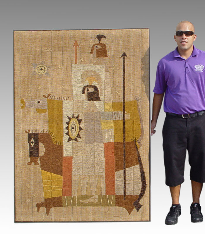 SMITH, John, (American, 20th C.): Knights on Horseback, 5' 6'' x 3' 10'', Tapestry, signed, framed, 5' 7'' x 3' 11''.