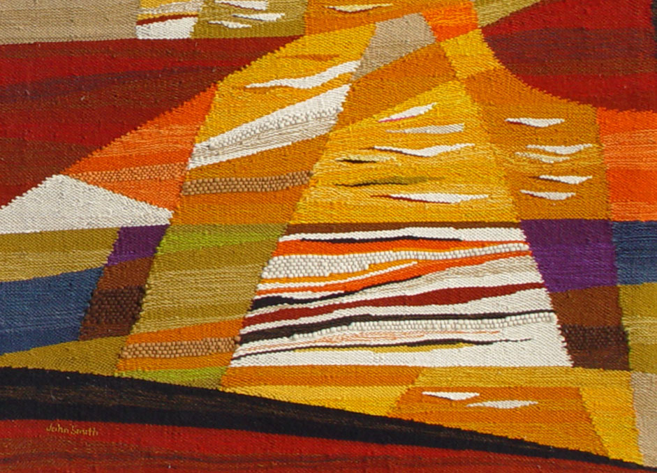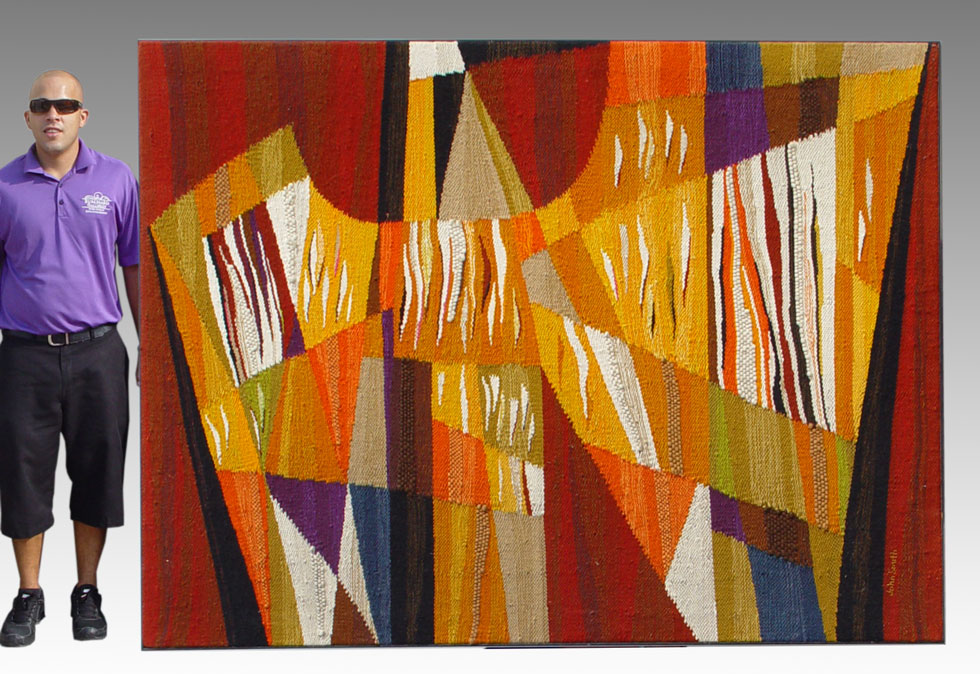 SMITH, John, (American, 20th C.): Modernist Tapestry of Phoenix Rising, 72'' x 96''.