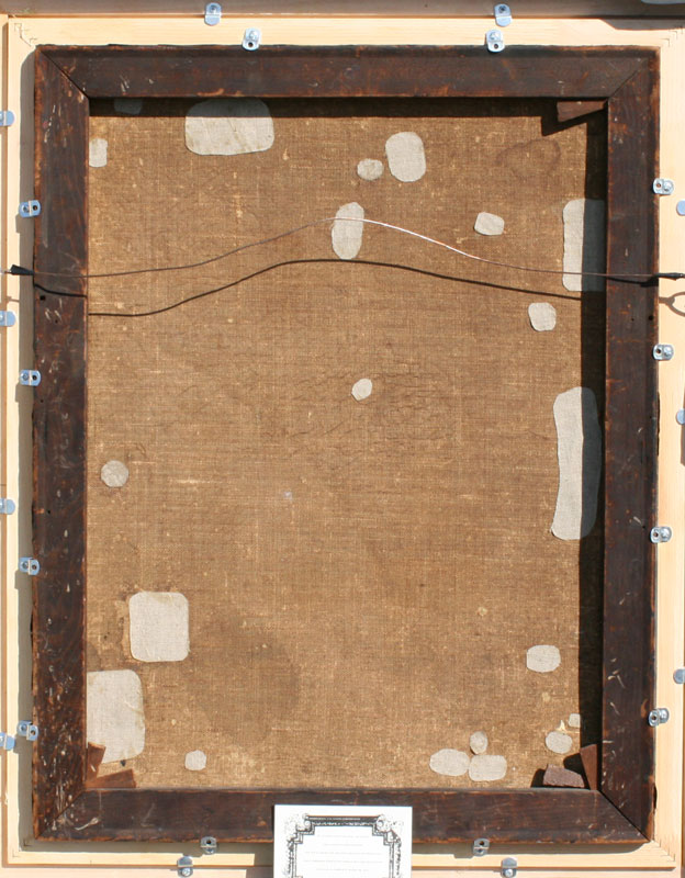 CONDITION: Cracklure throughout, several repairs visible from the front, numerous small patches verso. Sold as is.