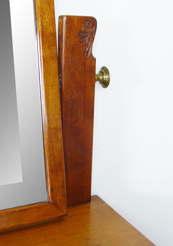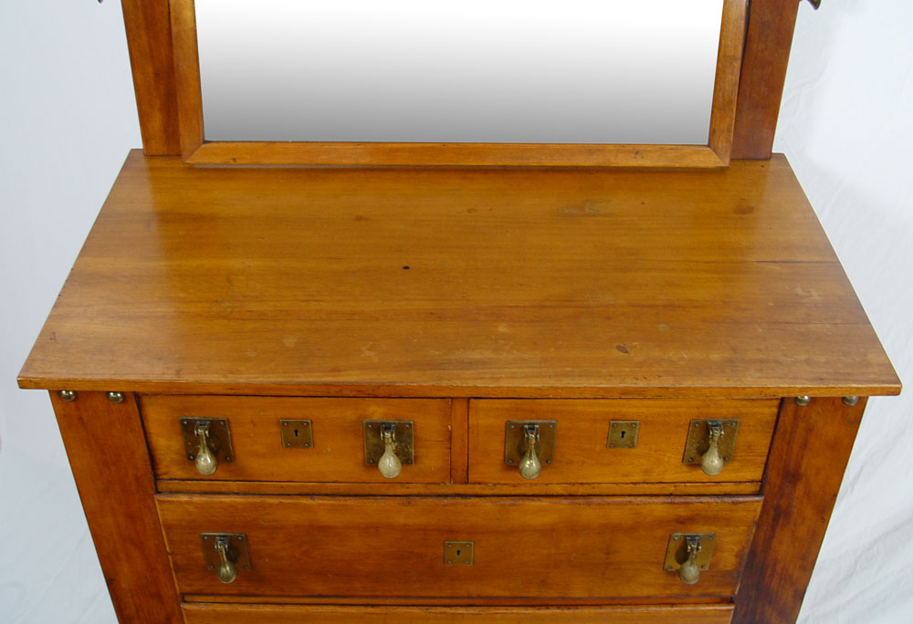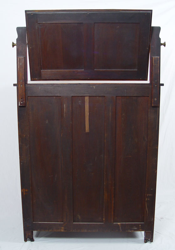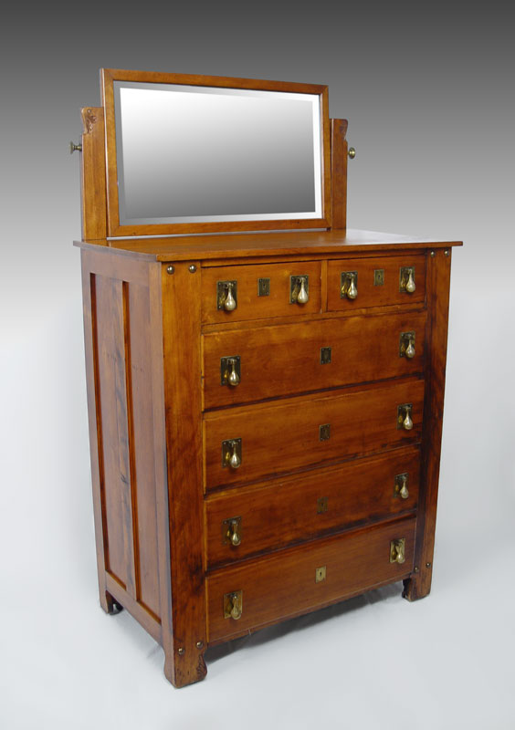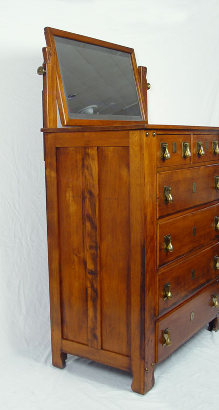 ARTS & CRAFTS GENTLEMAN'S CHEST WITH MIRROR: 2 over 4 drawer chest, beveled mirror hangs from supports, handsome drop pulls, 71''h. x 43'' x 23''d.