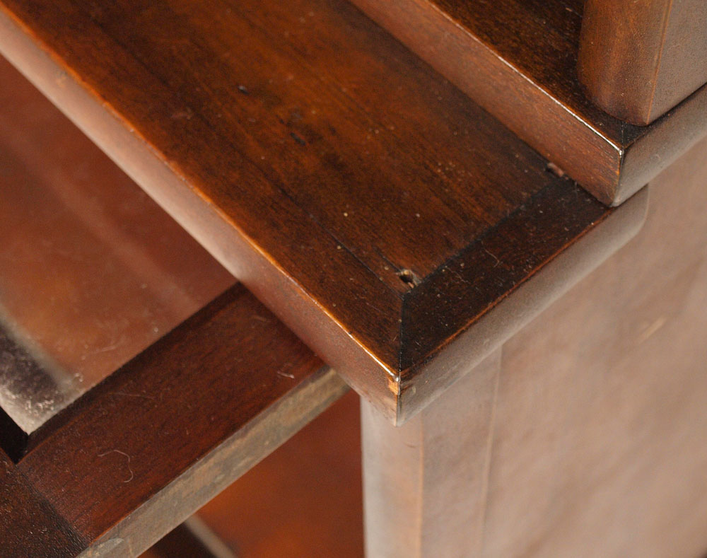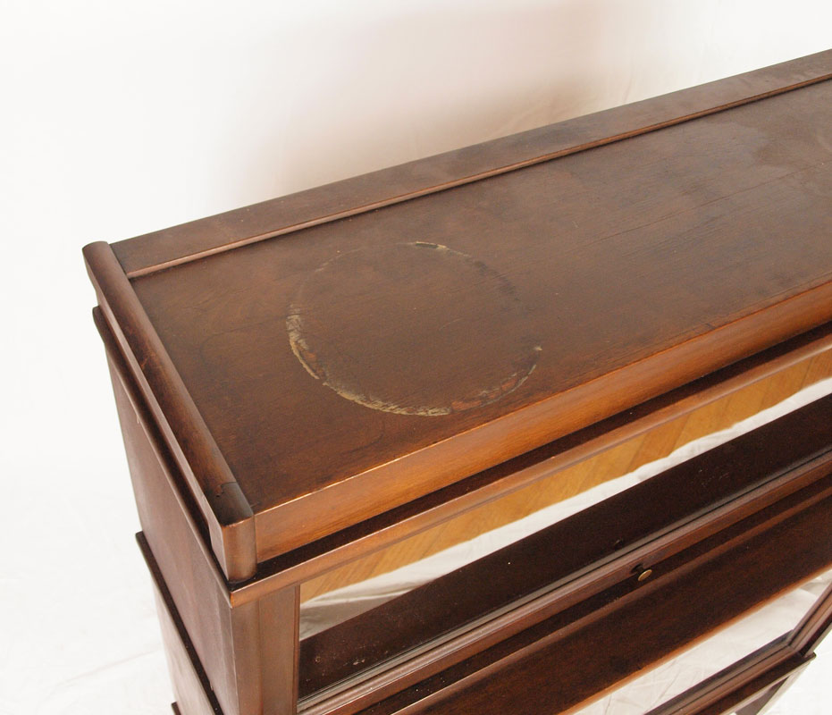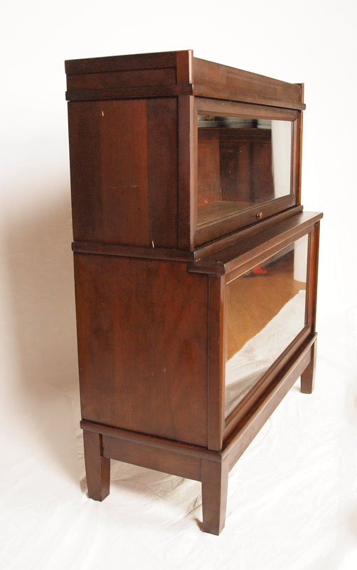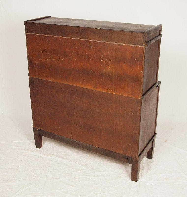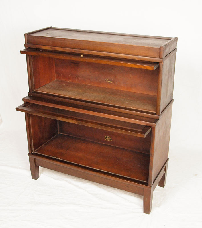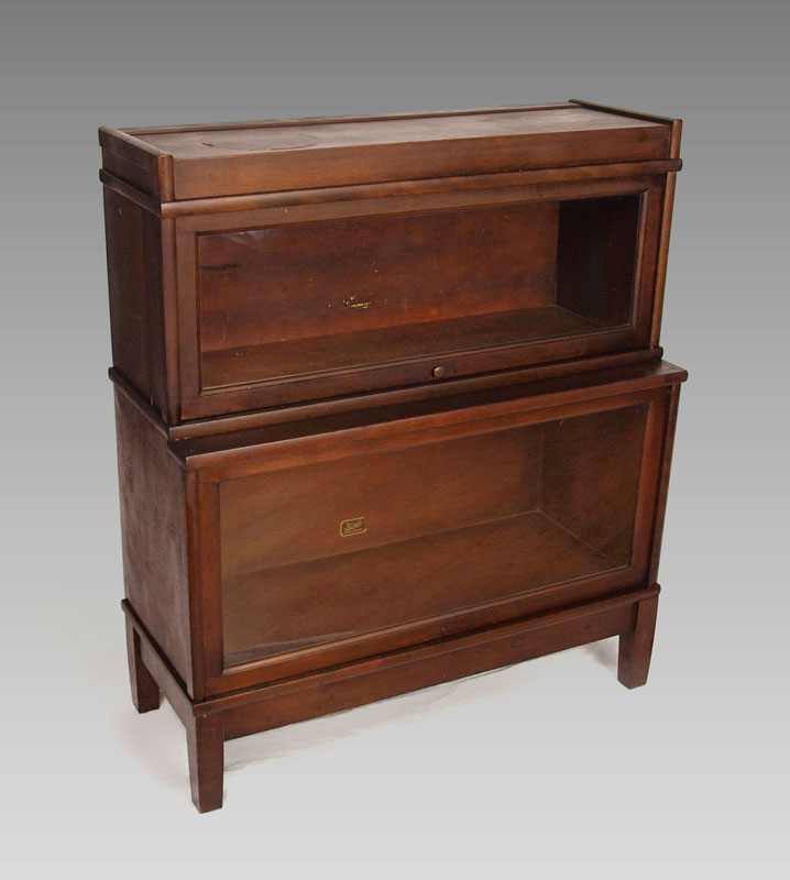 MAHOGANY 2 STACK BARRISTER BOOKCASE: Lift and slide glass doors complete with top cap and base, 40''h. x 34''w. x 11''d.