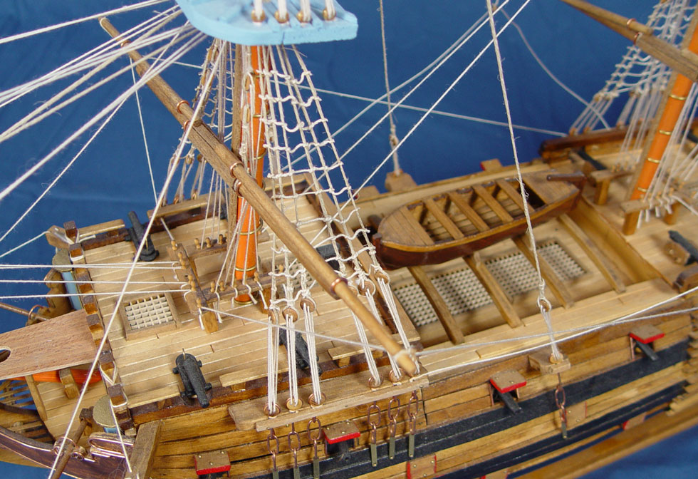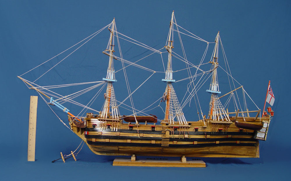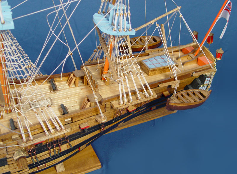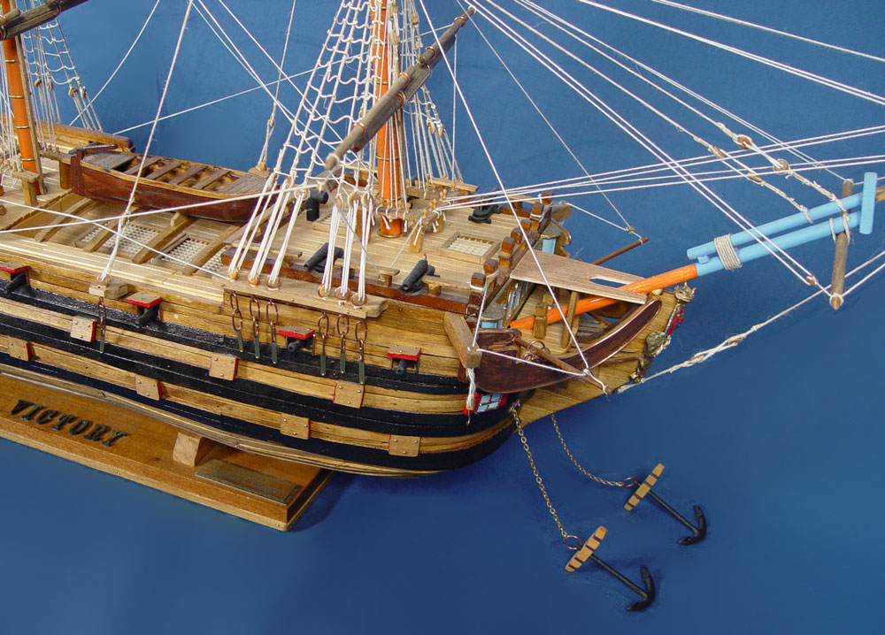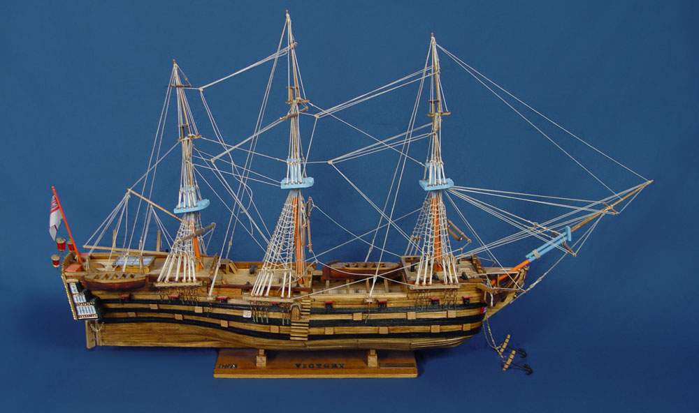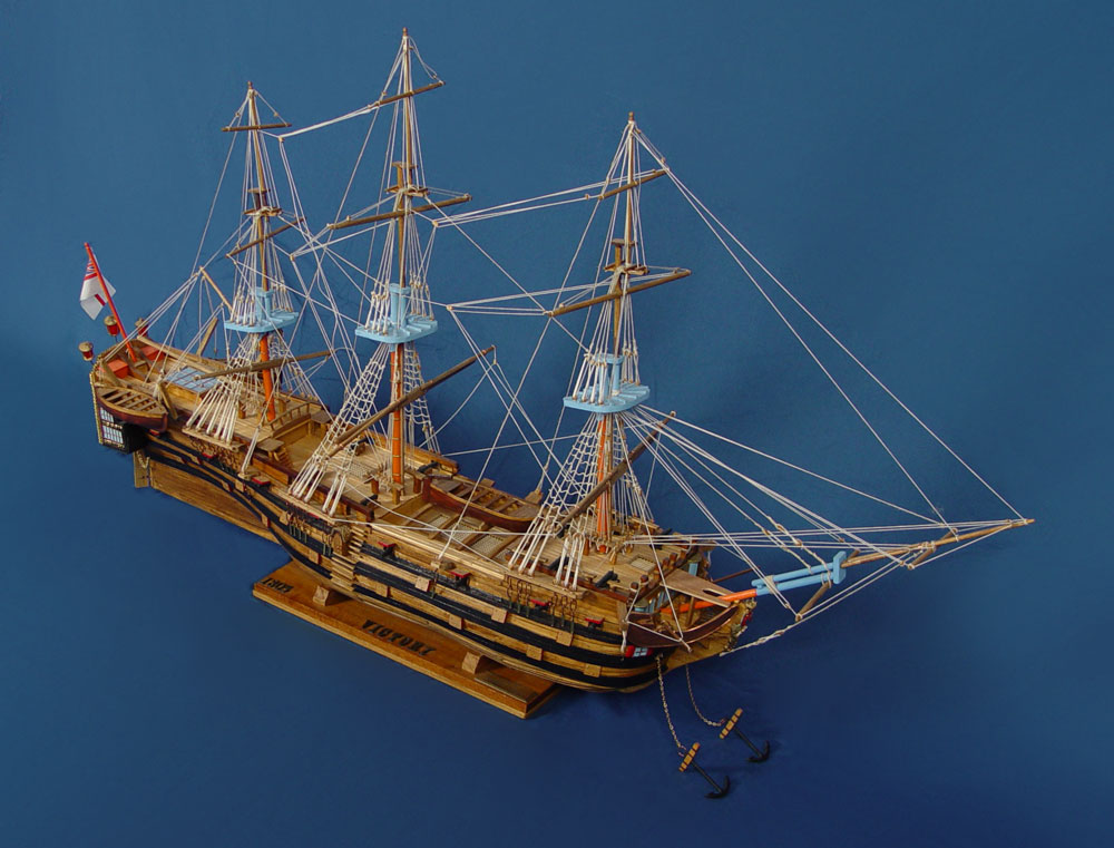 LARGE HAND CRAFTED WOOD SHIP MODEL HMS VICTORY: Completely hand made model of the HMS Victory with attention to detail. Measures 29'' high x 48 1/2'' long x 8'' wide.