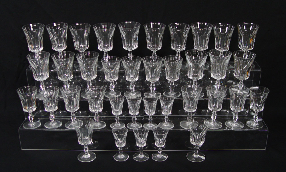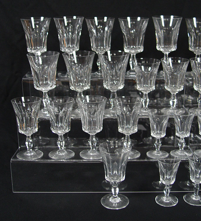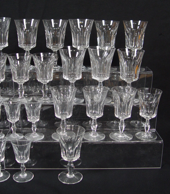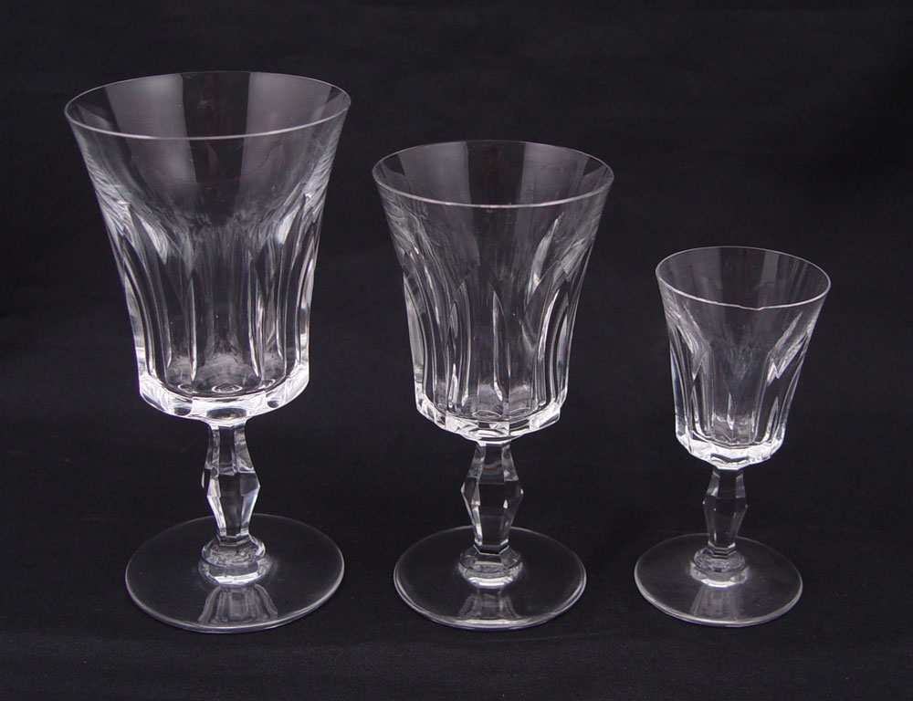 6 BACCARAT FRENCH CRYSTAL WINE & CORDIAL STEMS IN THE POLIGNAC Pattern: CA 1950. 16 Claret (approx. 5 4/4''), 13 red wines (approx. 5'') and 7 cordials ( approx. 4'').