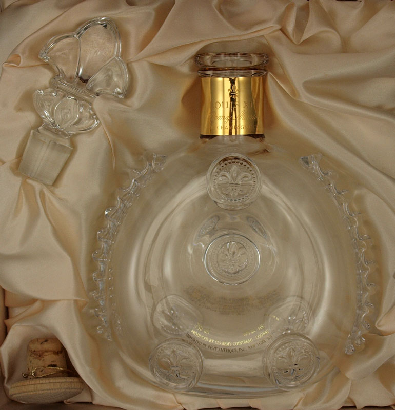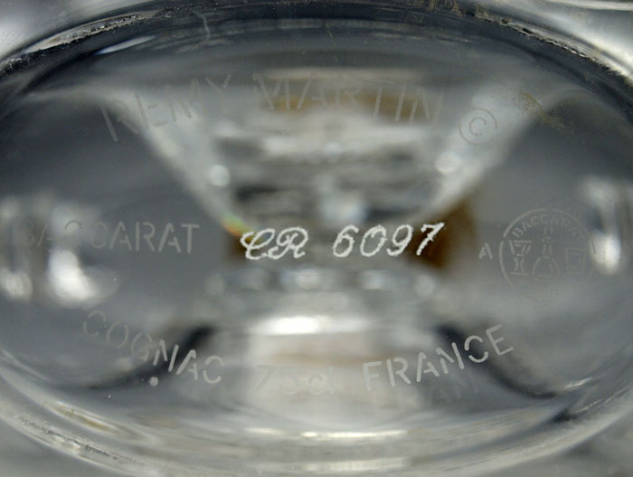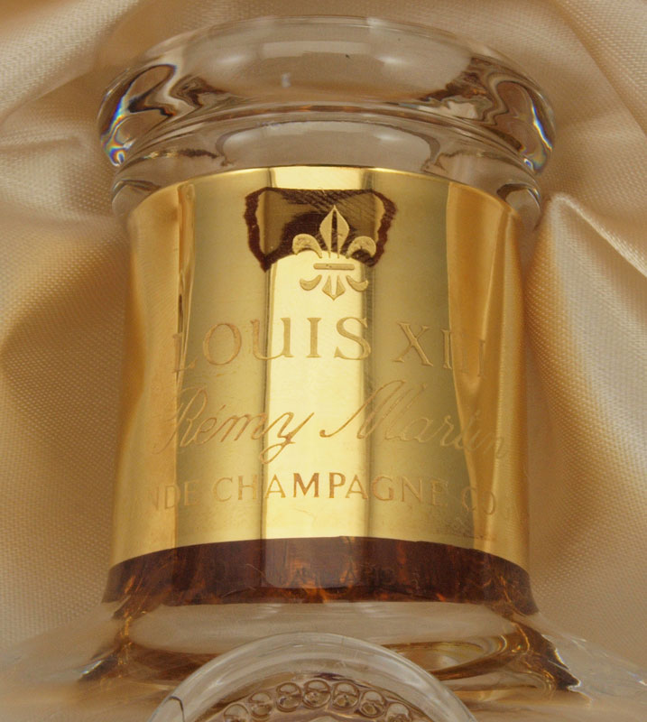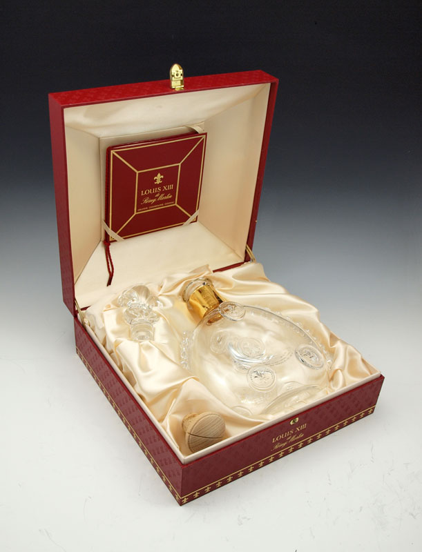 BACCARAT FRENCH CRYSTAL LOUIS XIII REMY MARTIN DECANTER: In original fitted presentation box with stopper and cork. The box is 4'' x 10 1/2''.