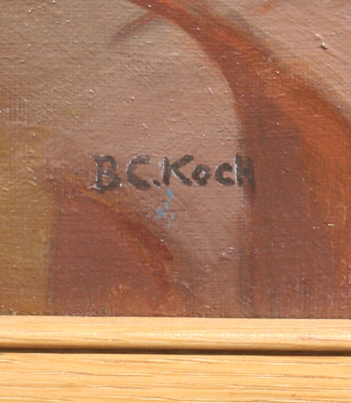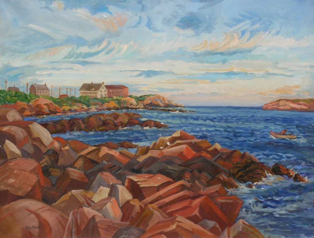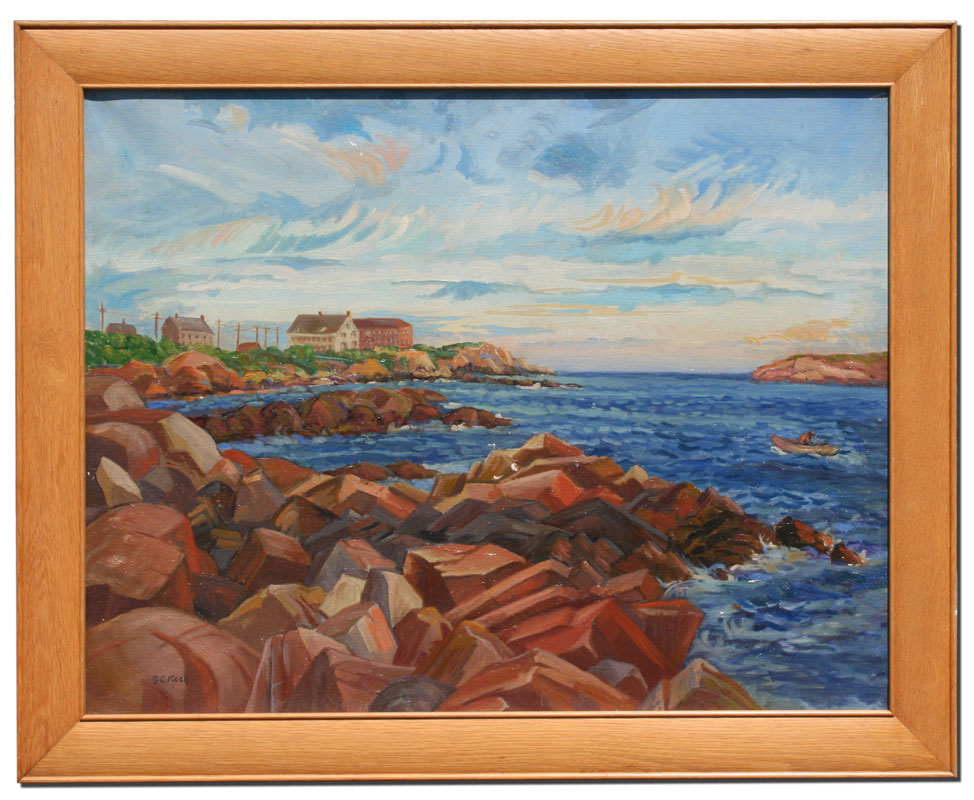 KOCH, Berthe, (American, 1899-1975): ''Straitsmouth'', Rockport, Massachusetts, OIL/Canvas, 28'' x 36'', signed lower left, encased in original heavy oak frame, 34'' x 42'', old label affixed verso.