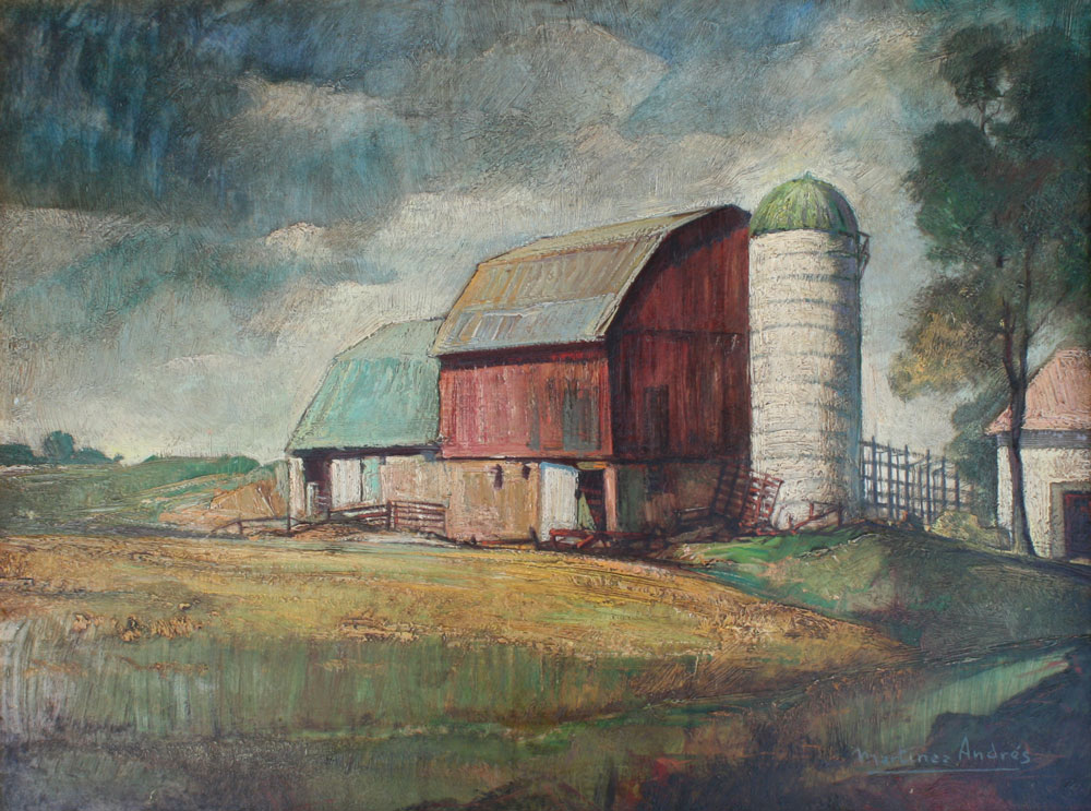 ANDRES, Martinez: Barnhouse, OIL/Masonite, 18'' x 24'', signed, framed, 21'' x 27''.