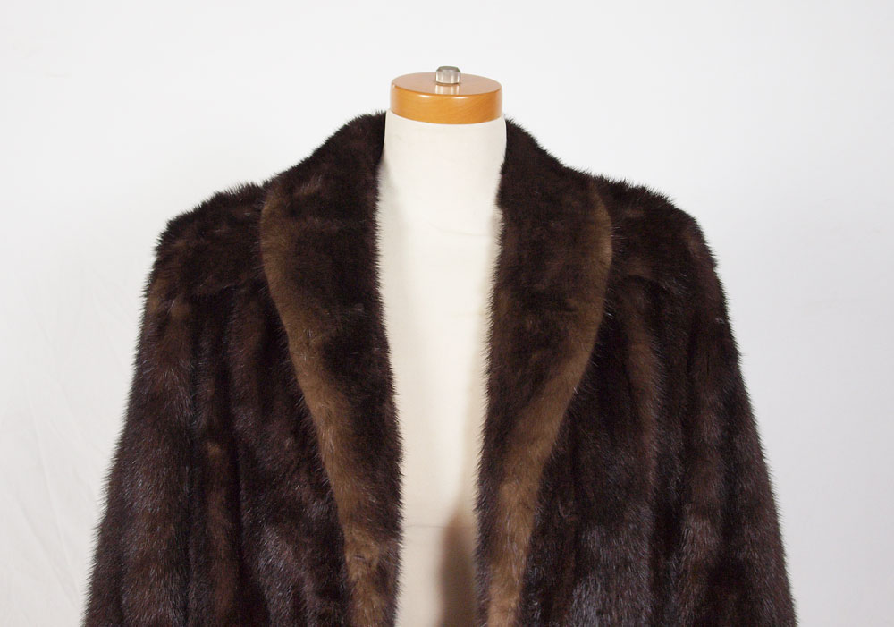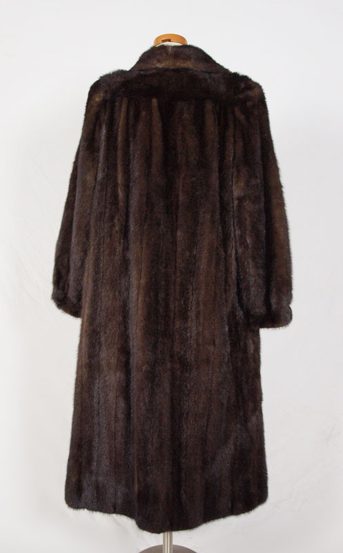 FULL LENGTH MINK COAT: Full length, approx 50'' overall, with long sleeves and collar. Hudson's Fur Salon label.