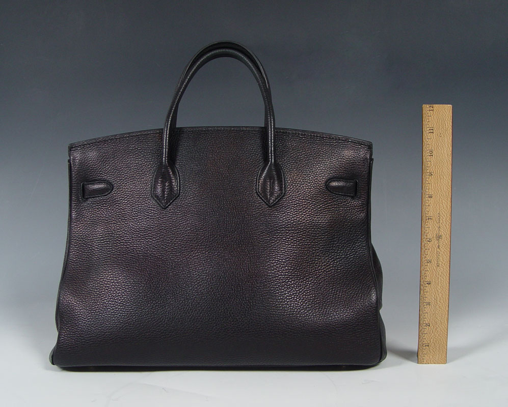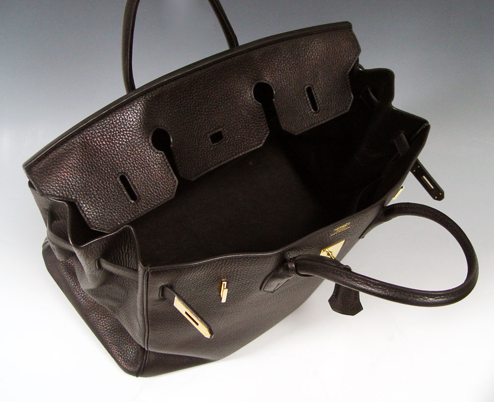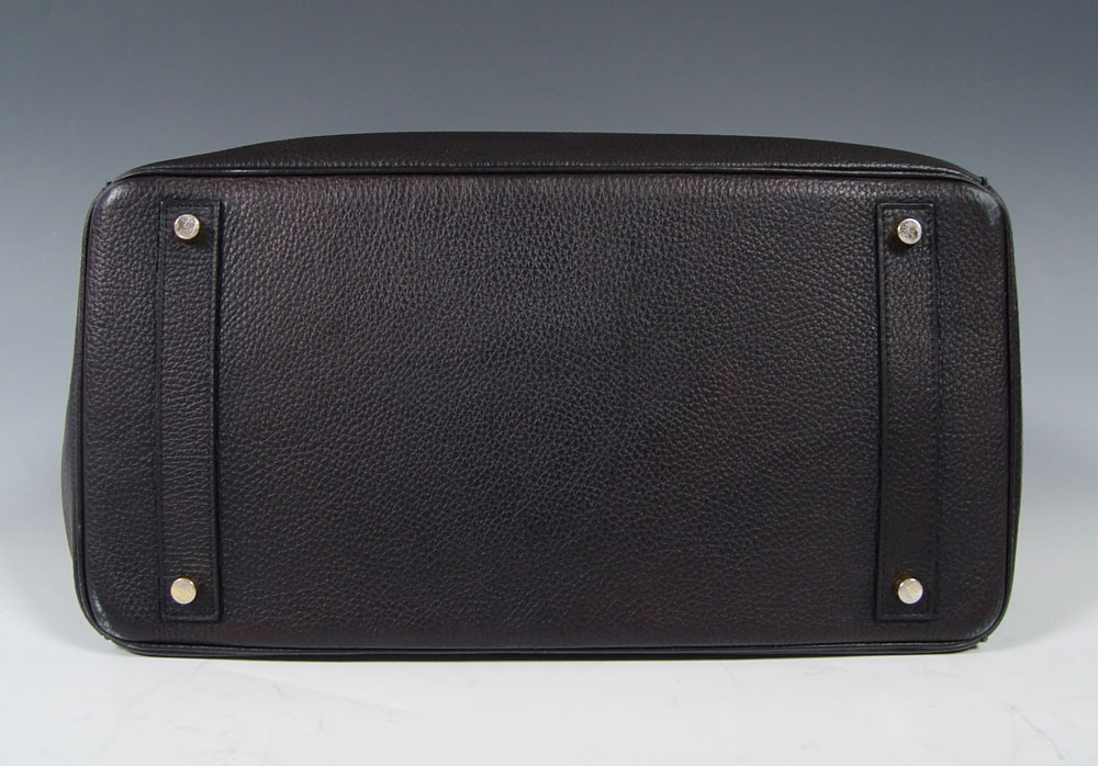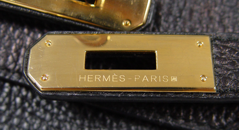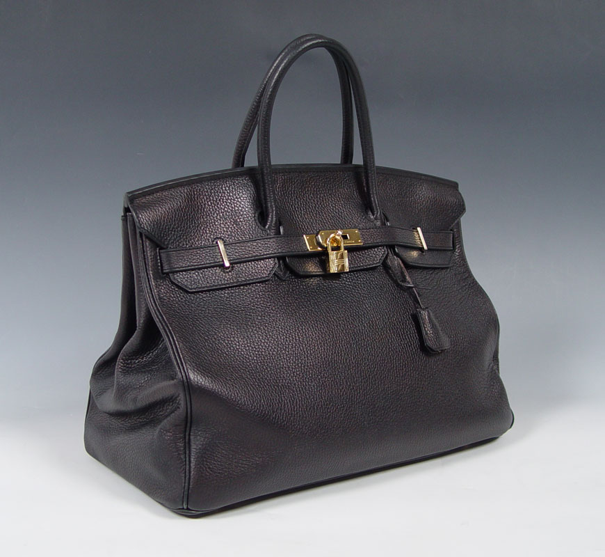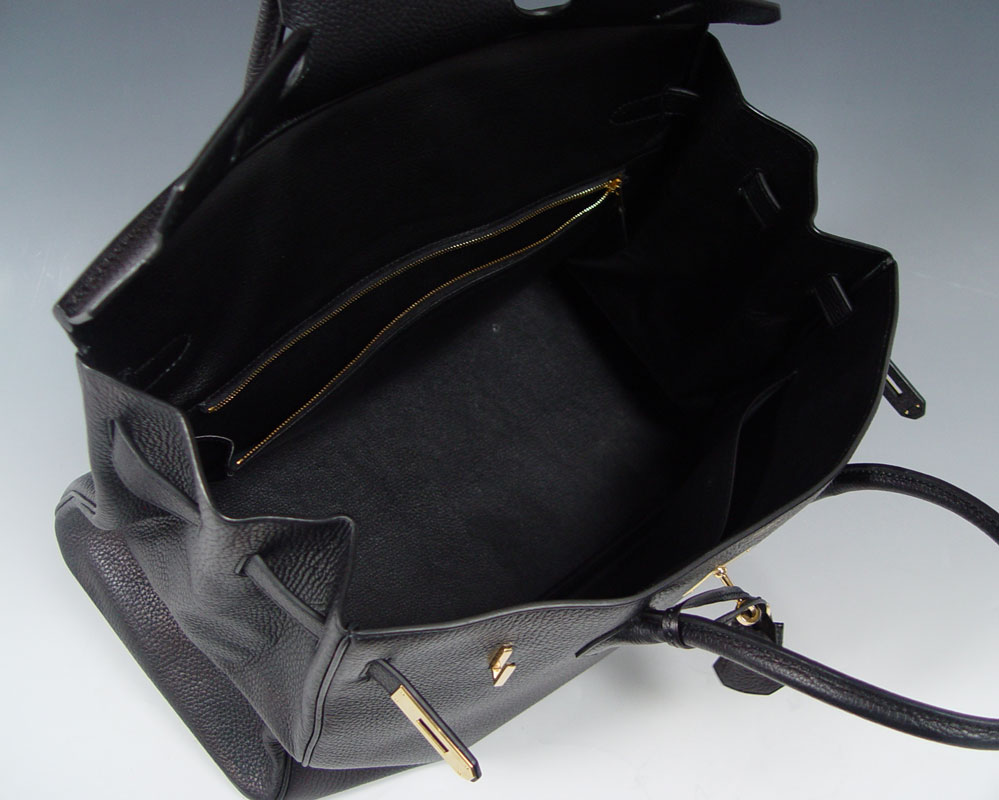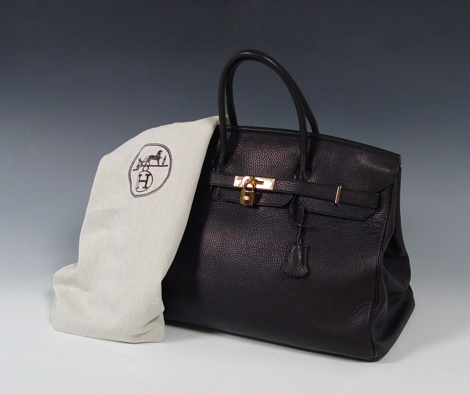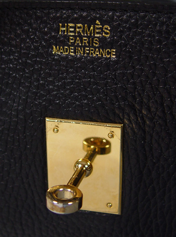 HERMES BLACK TOGO LEATHER BIRKIN BAG: Contemporary French handbag in Togo leather. Gold color hardware. Sold with the lock, key in sheath and dust cover. Impressed 83A M. Marked Hermes Paris in France. Approx. 11'' x 15'', excluding the handles. Unused condition.