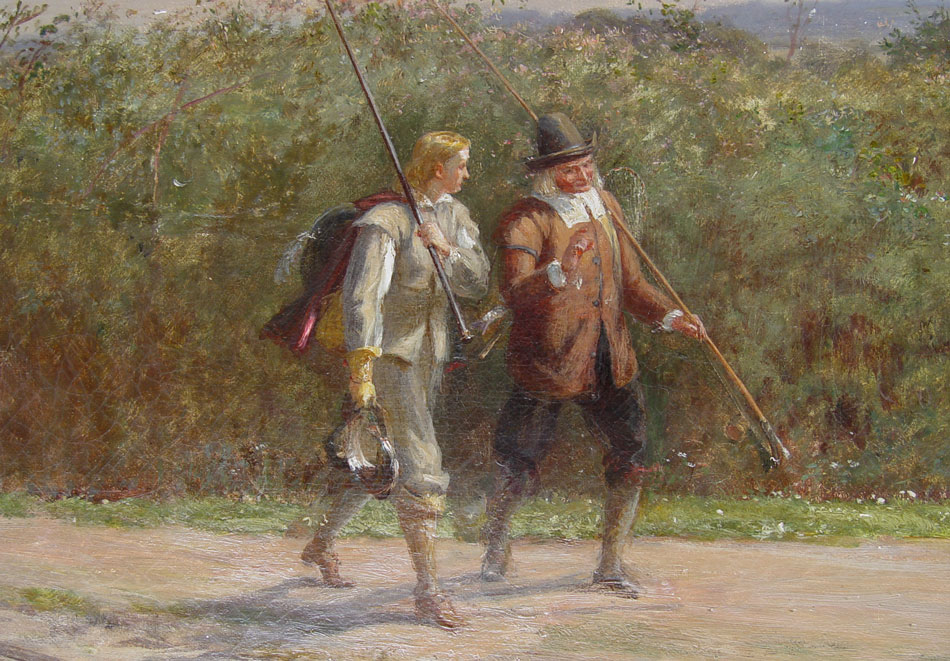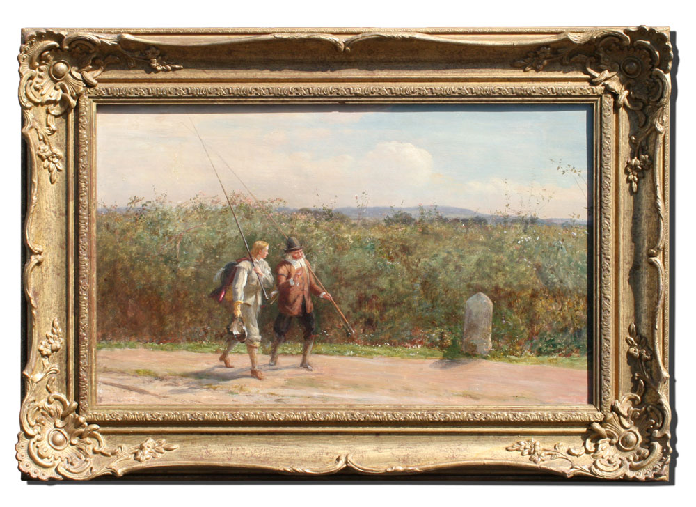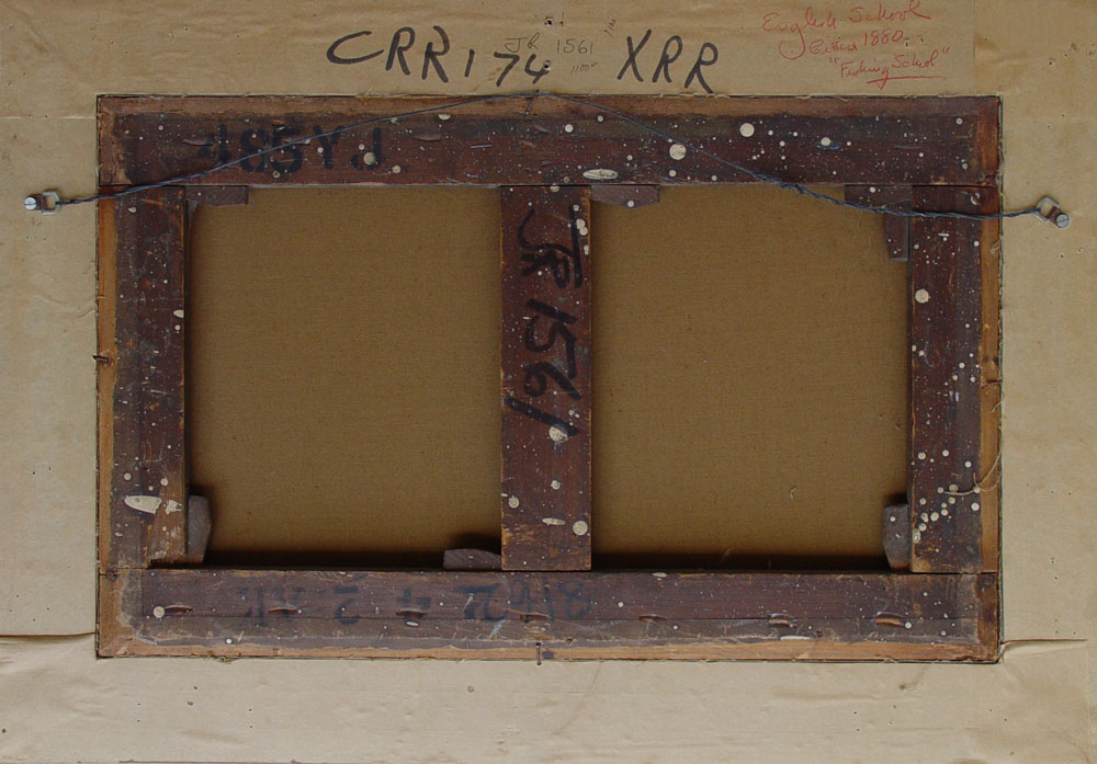 ENGLISH SCHOOL OIL/CANVAS CIRCA 1880, ''FISHING SCHOOL'': 12 1/2'' x 20'', marked verso ''Hardy'', gilded frame, 15'' x 25''.