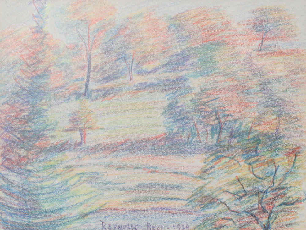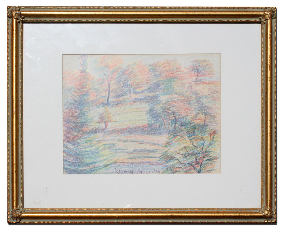 BEAL, Reynolds, (American, 1866-1951): Autumnal Landscape, Crayon, sight size 9 1/2'' x 12 3/4'', signed, dated 1934, gilded shell motif frame, 18'' x 22 1/4''.