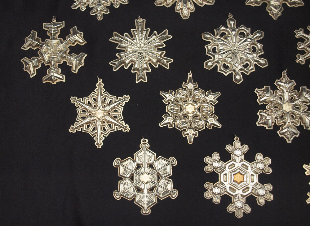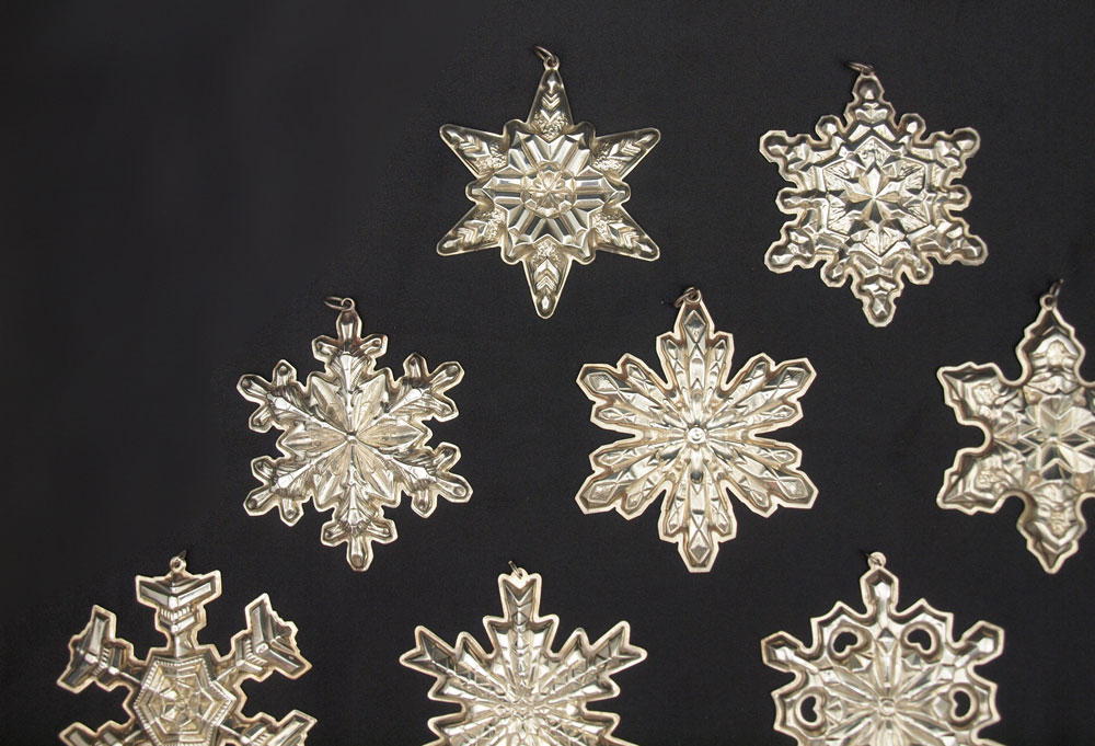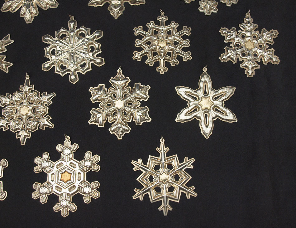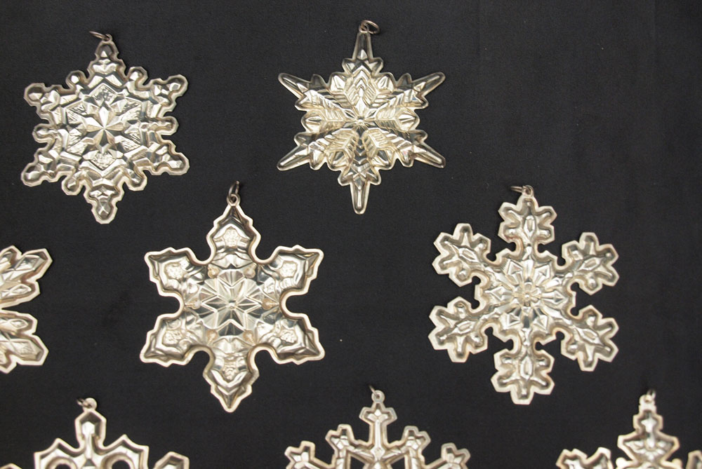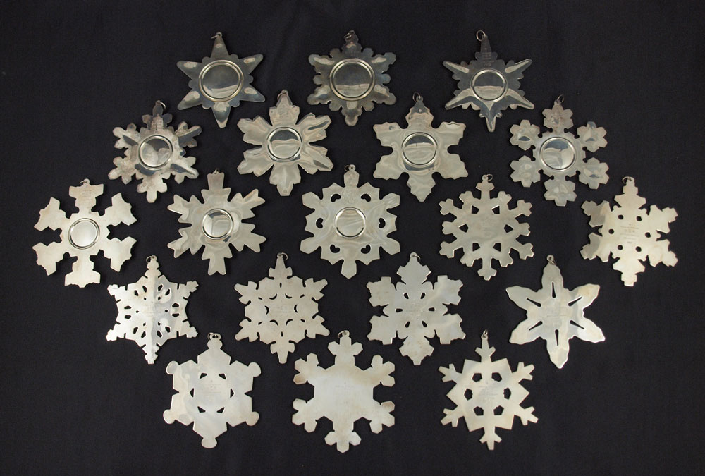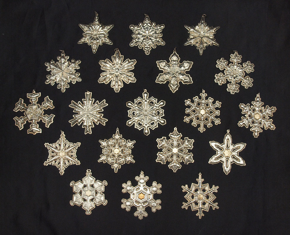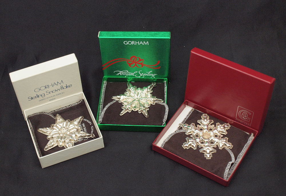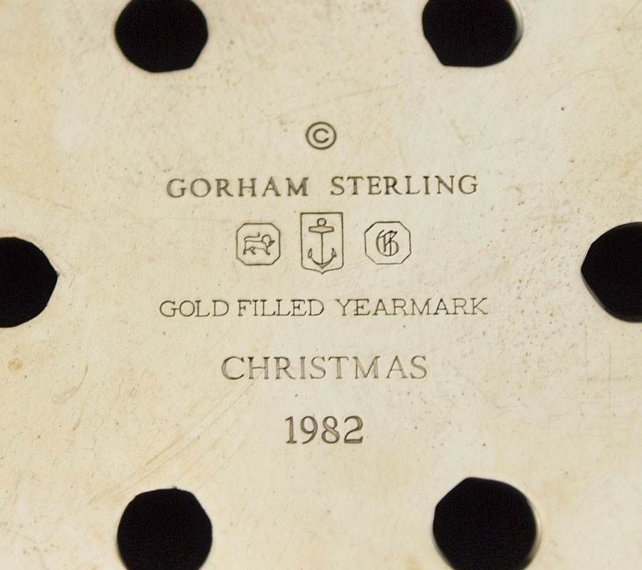 19 GORHAM STERLING ANNUAL CHRISTMAS ORNAMENTS: Years dating 1970-1979, 6.975 troy oz & 1981-1989 with gold filled year marks, 5.755 troy oz. Sold with the boxes.