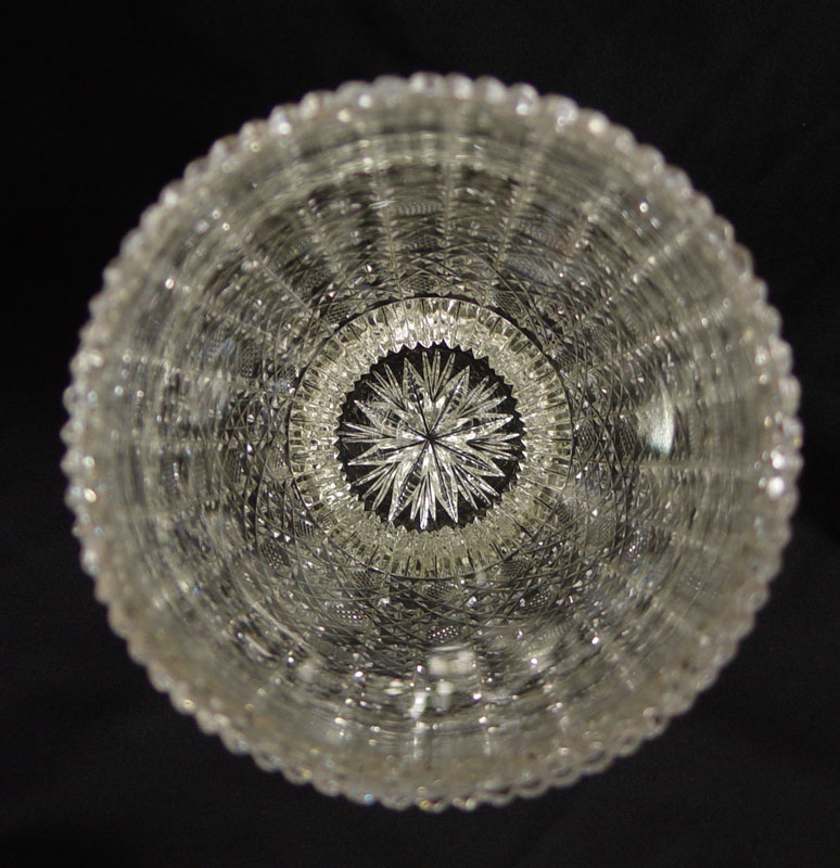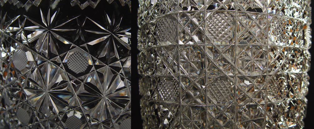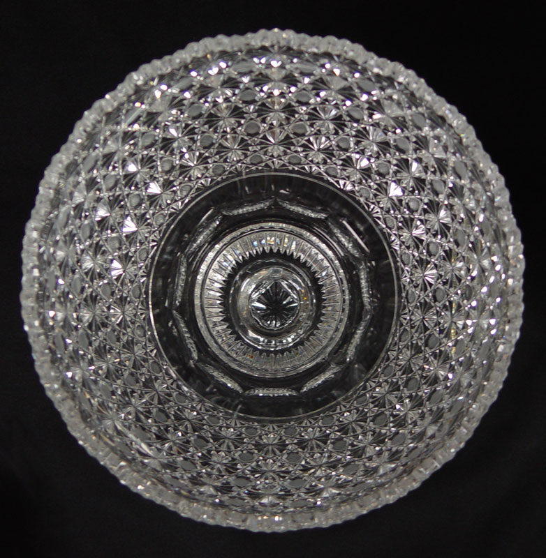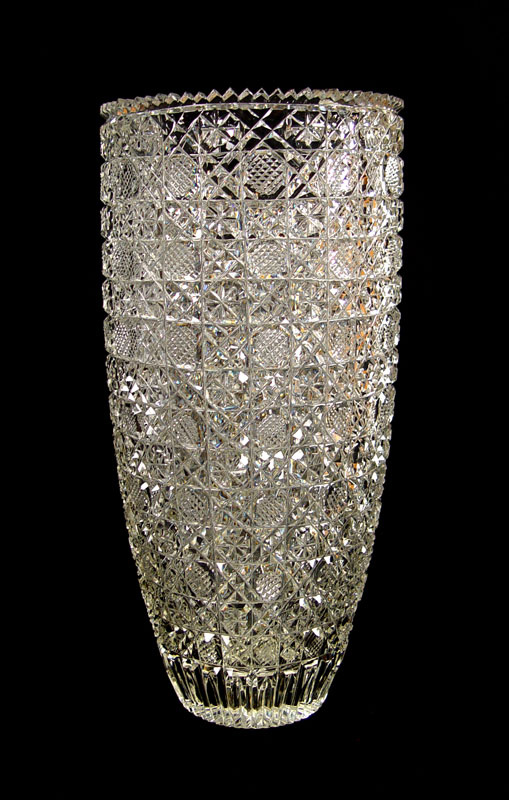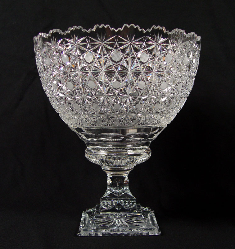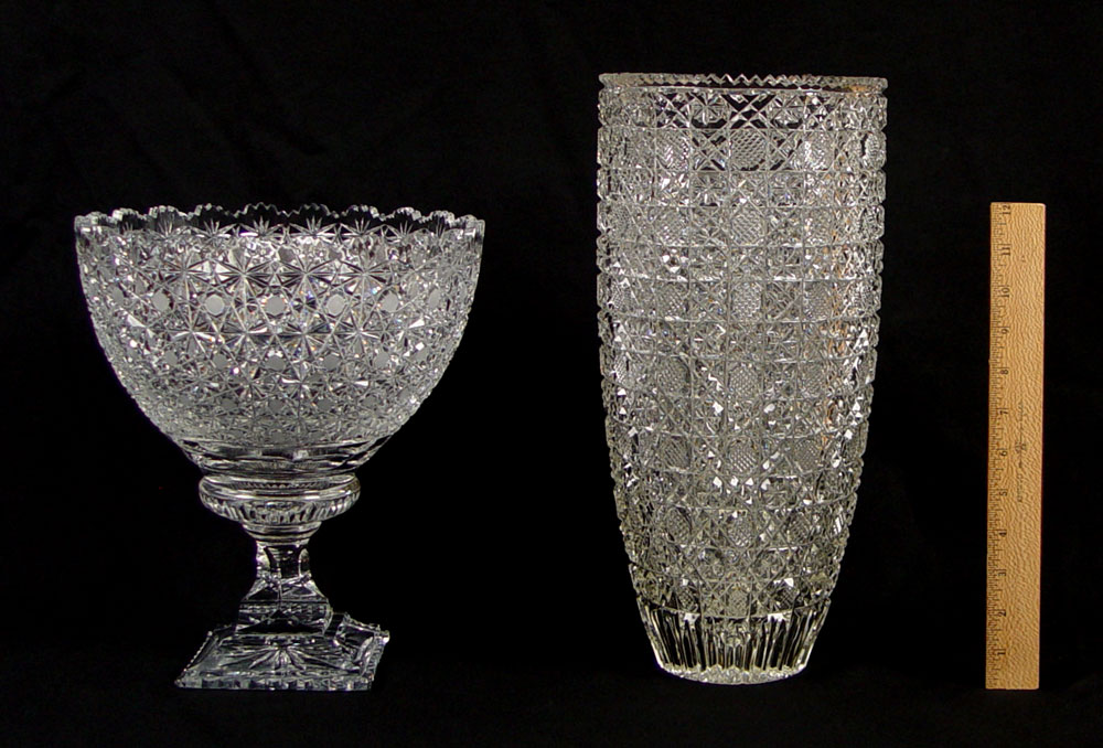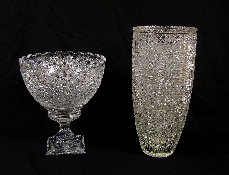 OVERSIZE BOHEMIAN CUT GLASS VASE AND PEDESTAL BOWL: 1) Tall vase, 15'' tall. 2) Pedestal bowl, 11 1/2''h.