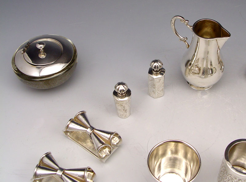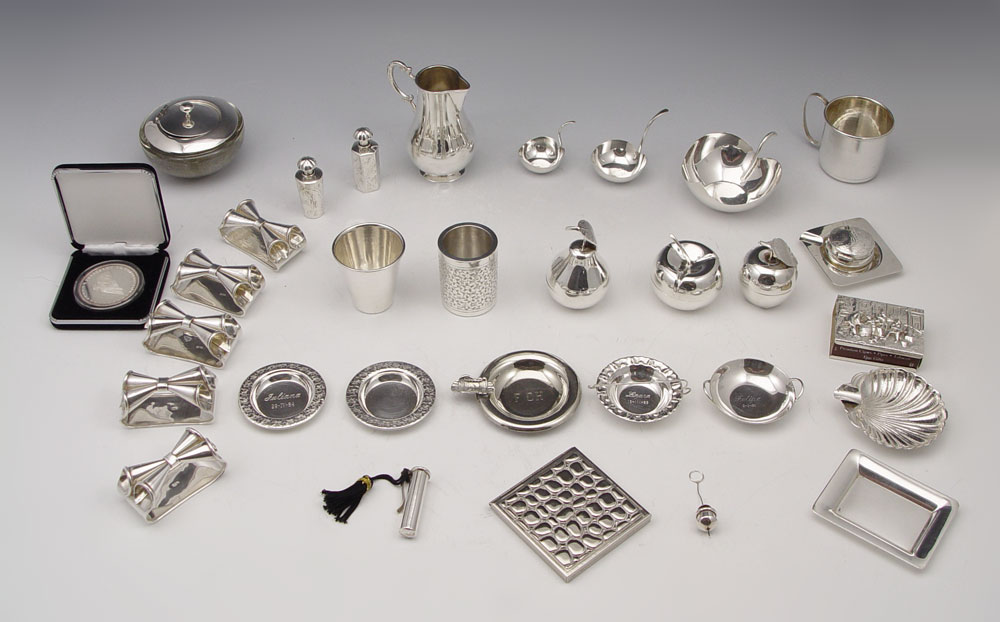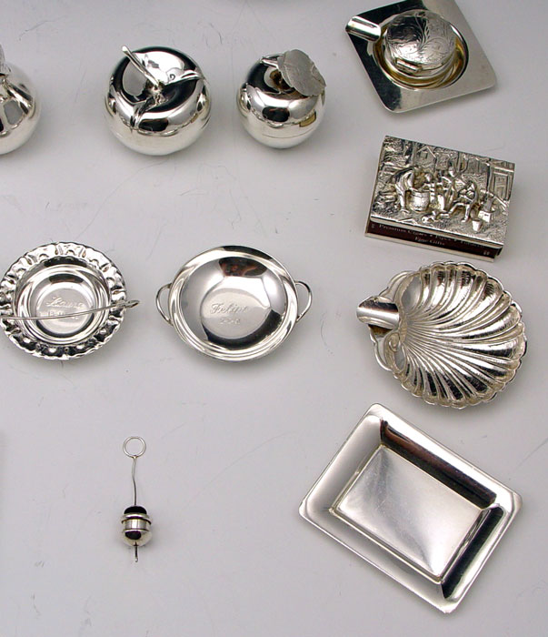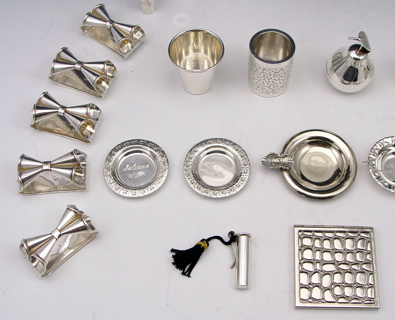 LARGE LOT OF ESTATE SILVER: Approx. 32 pieces to include sterling and 900 silver. Pieces include napkin rings, small trays, pitchers, scent holders, pill boxes, .999 silver coin and more. 6 of the pieces are unmarked as to metal content and not included in weight. Approx. 16.3 troy oz.