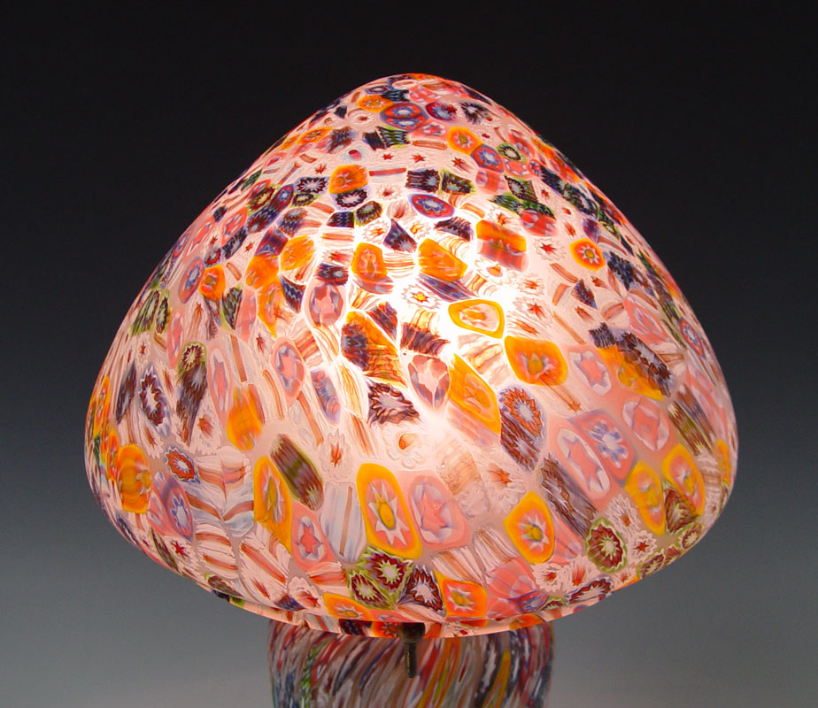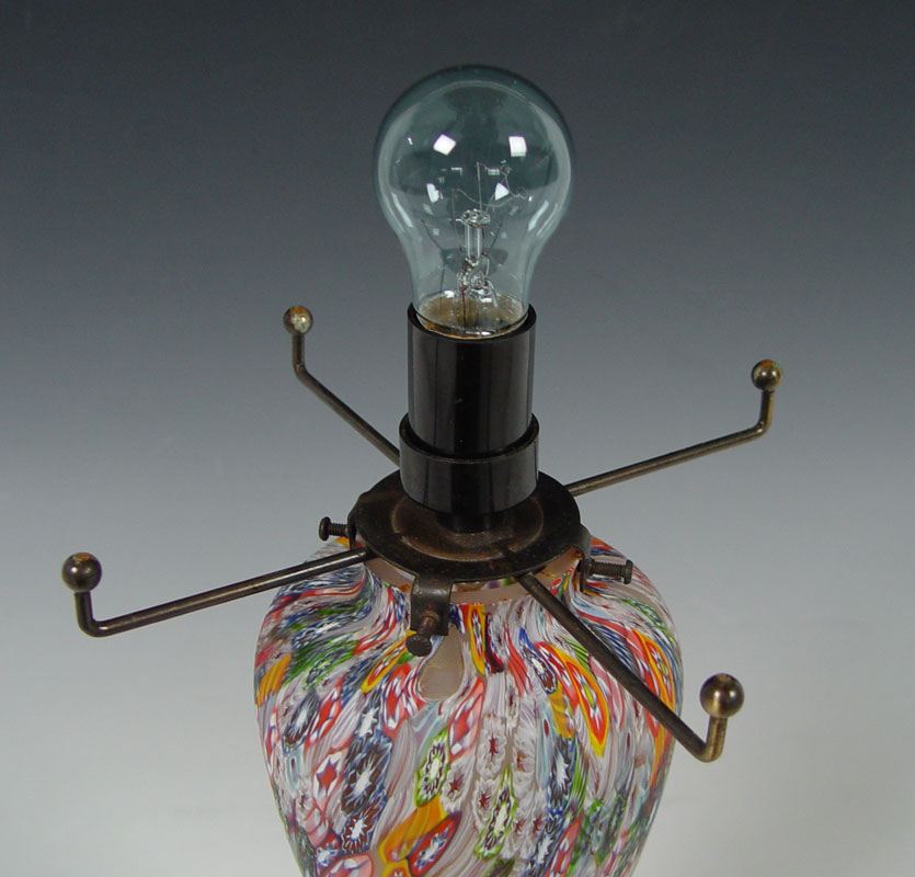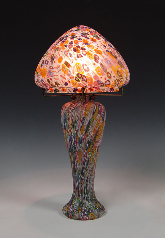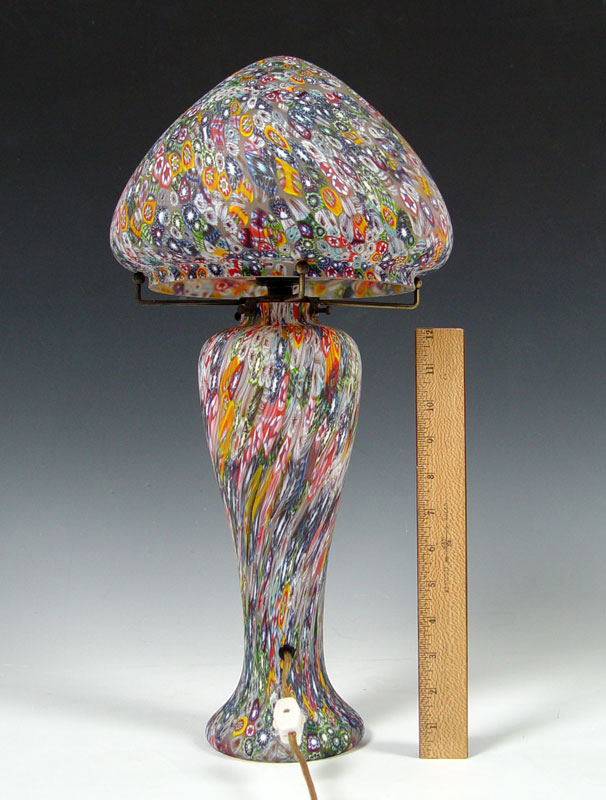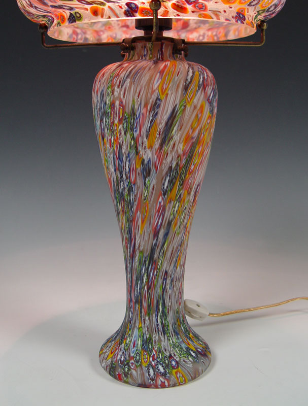 MILLEFIORI ART GLASS LAMP & SHADE: 20 1/2'' h. overall. Base 13 x 5'' dia., shade 7'' x 10'' dia.