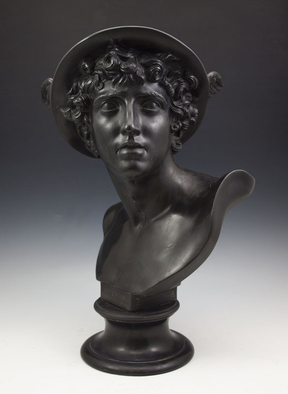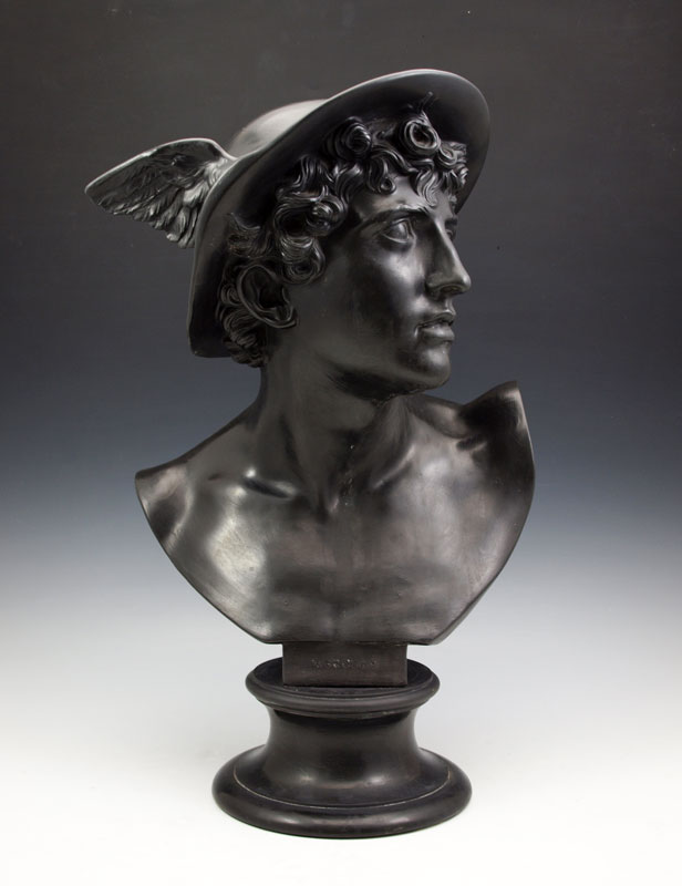 WEDGWOOD MERCURY BUST: Impressed Wedgwood stamp on back. Measures 18'' h. x 11'' x 9''. From the collection of Banana George Blair.