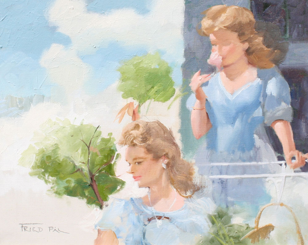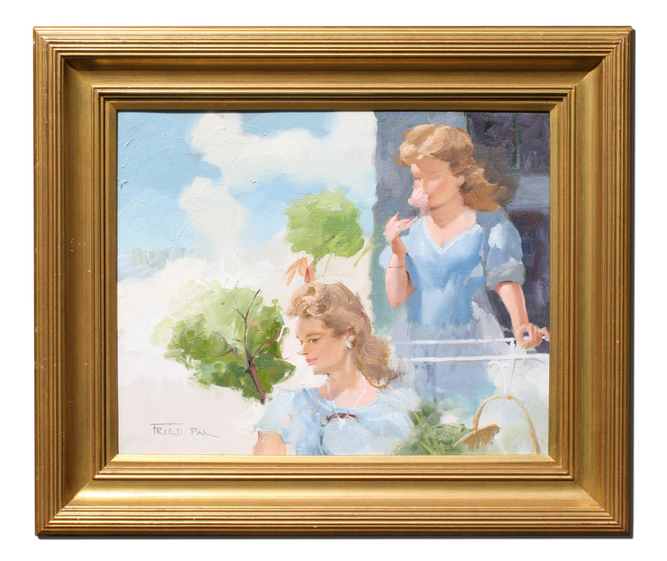 FRIED, Pal, (Hungarian/American, 1893-1976): Two Female Beauties in a Landscape, OIL/Canvas Sketch, 16'' x 20'', signed, framed, 24'' x 27''.