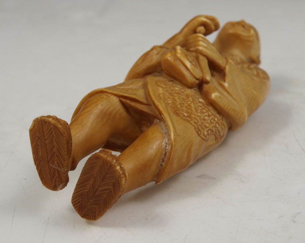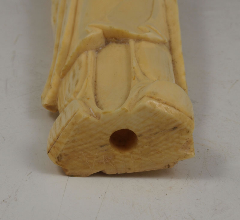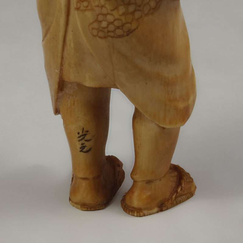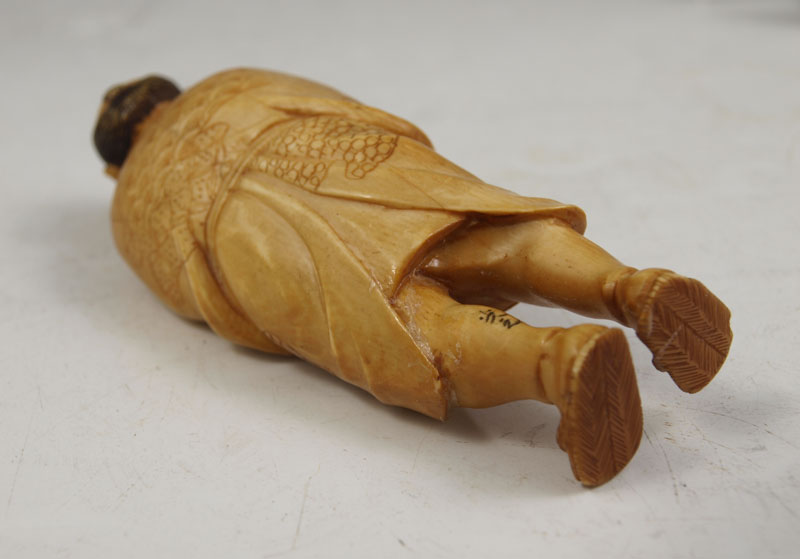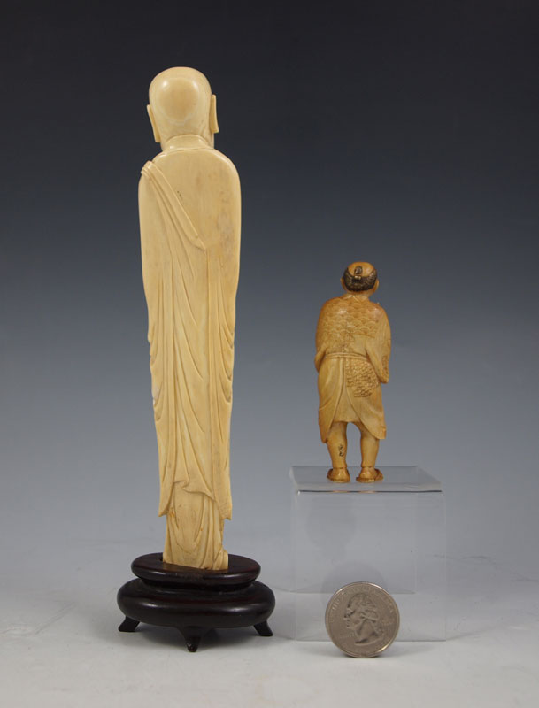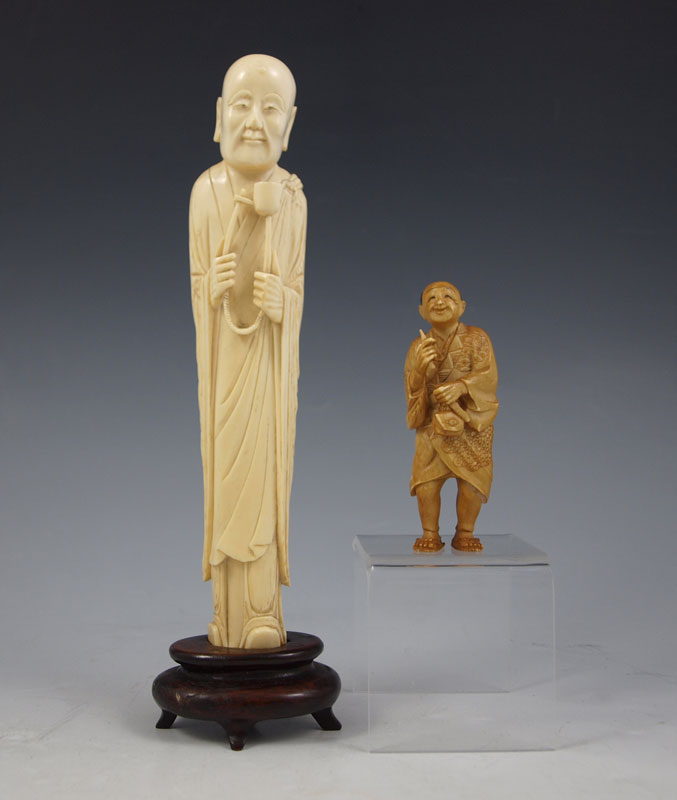 2 CARVED IVORY FIGURES: 1) Elder, 6 3/4''h. 2) Signed on the back of his leg, a 3'' man.