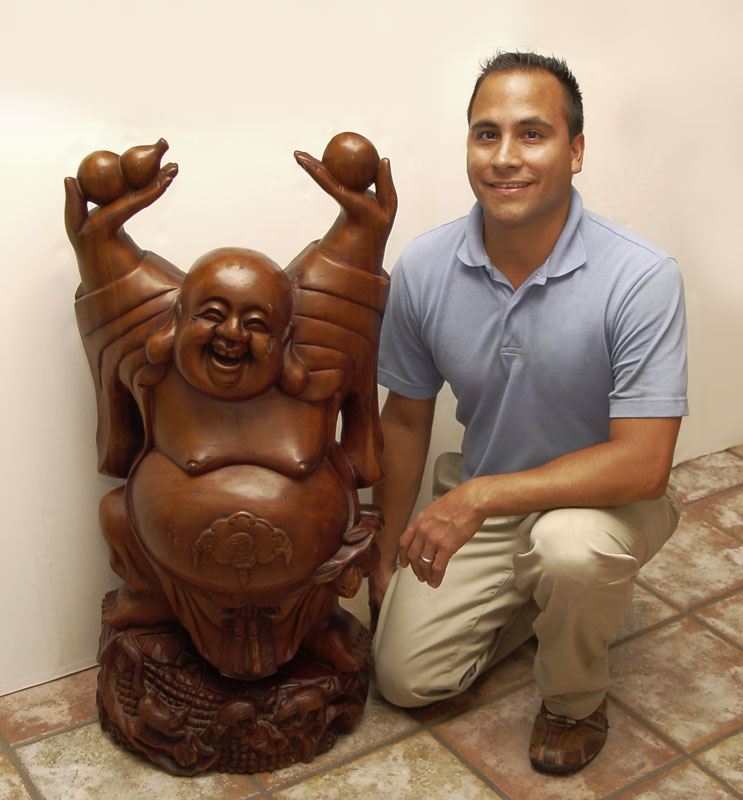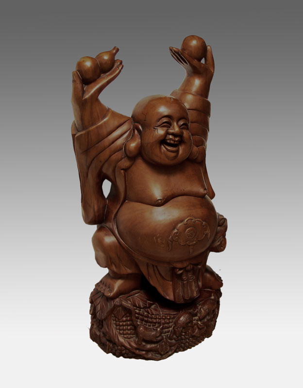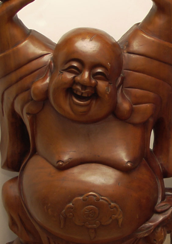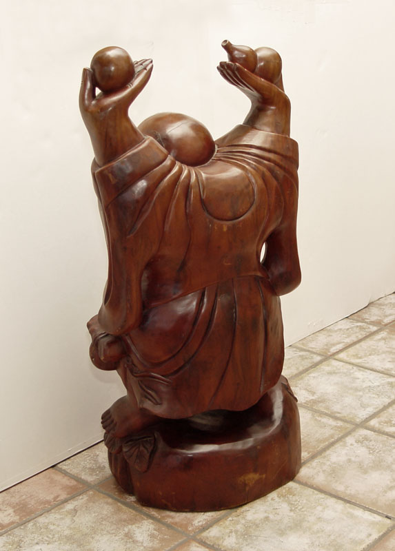 LARGE TEAK BUDDHA: 38'' h . x 19'' x 14''