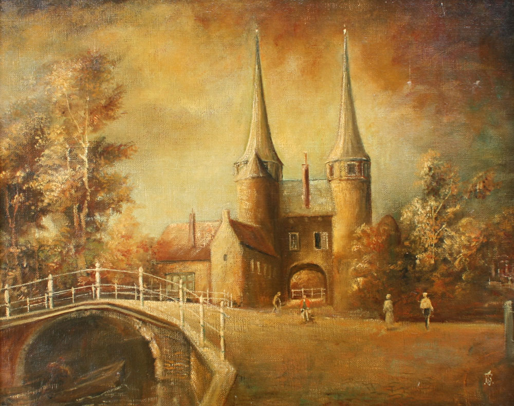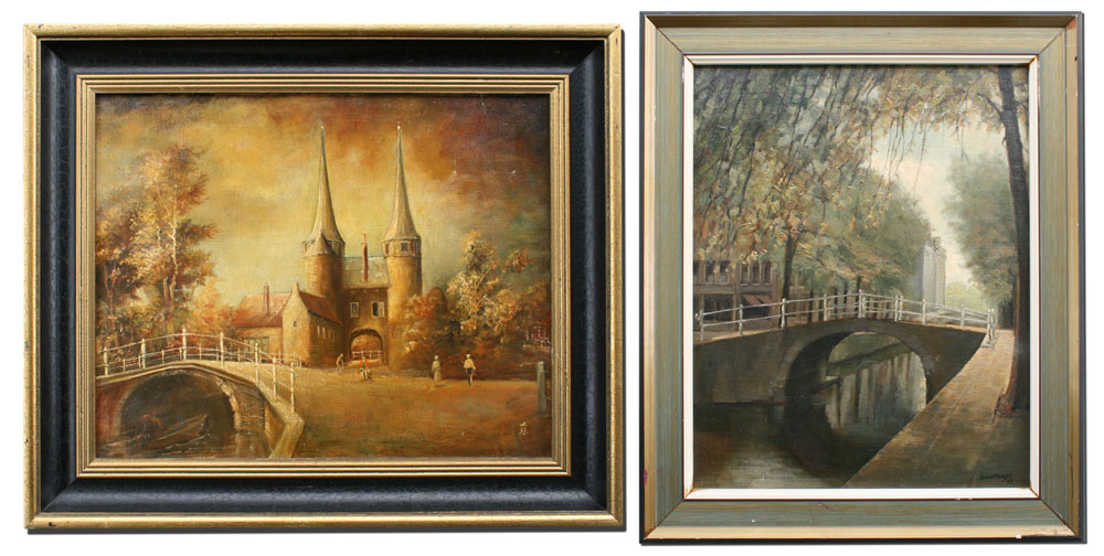 DEN HENGST, Jan, (Dutch, 1904-1983)): Pair Dutch City Scenes, OIL/Canvas, 19 3/4'' x 15 3/4'', 15 3/4'' x 19 3/4'', both signed and framed, 21'' x 17'', 17'' x 21''.