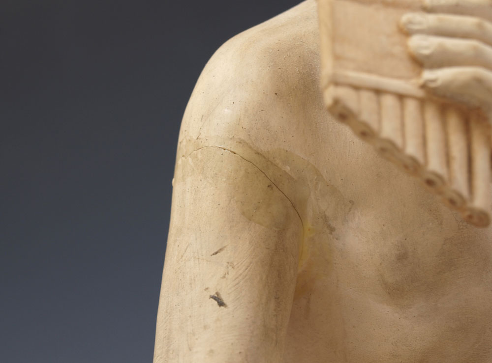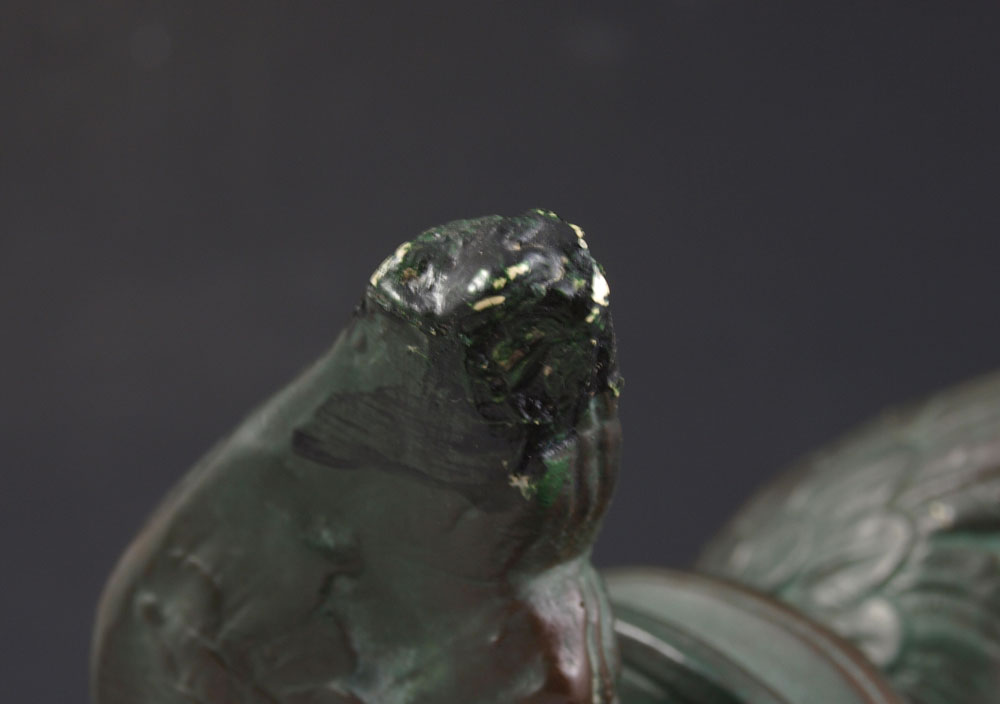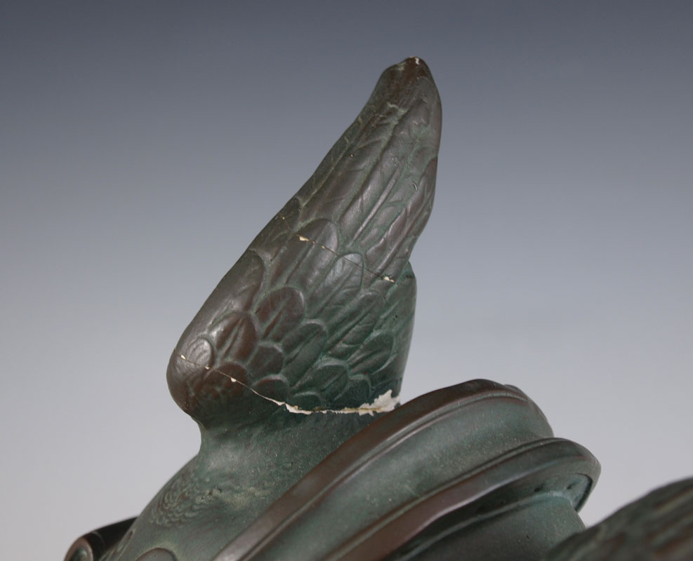 CONDITION: First) repairs on wings on top and base, several scattered chips overall. Second) Hand and arm have been repaired.