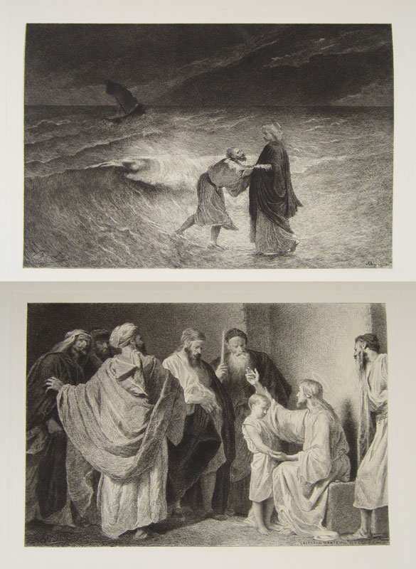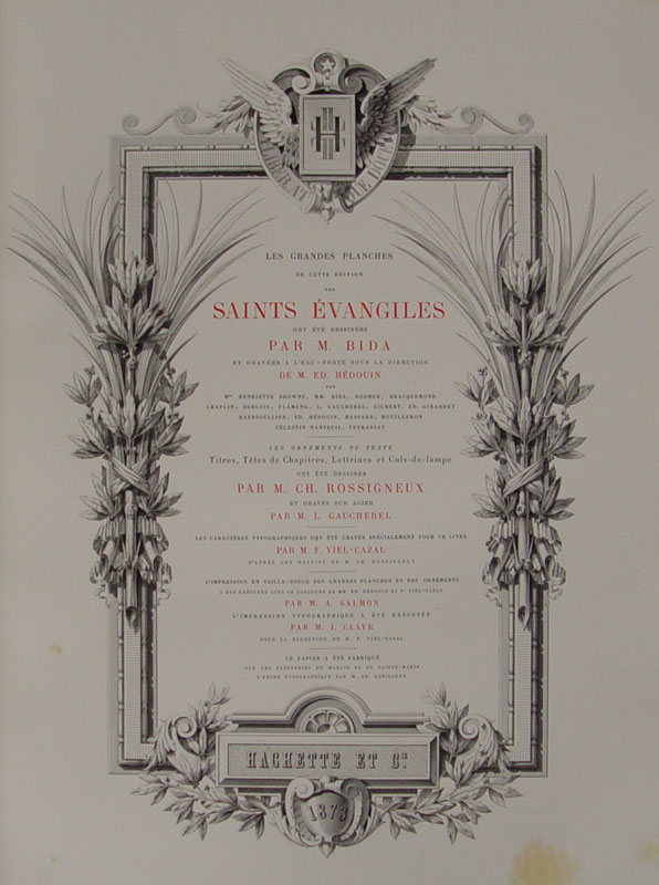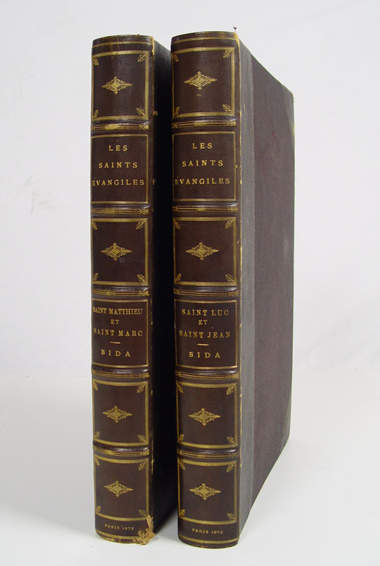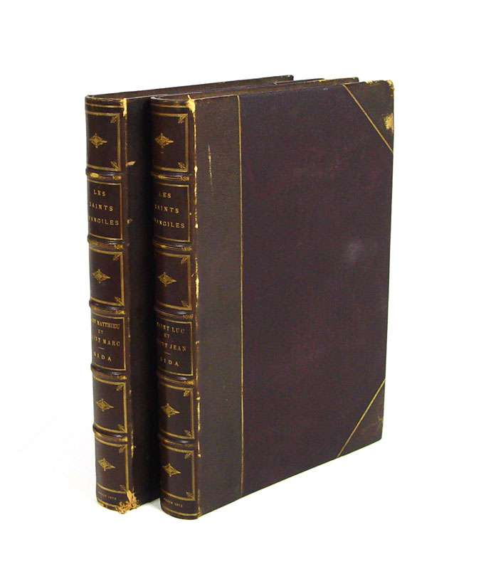 1872 LES SAINTS EVANGILES DE BOSSUET BOOKS: 2 Elephant size folios, 1872 Paris, Librarie Hachette et Cie. New Testament gospels in French. Volume 1 with 65 plates, Volume 2 36 plates. 2 1/2'' x 22 1/4'' x 16 1/2''.