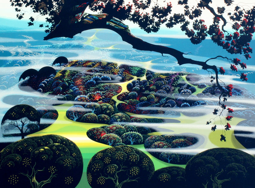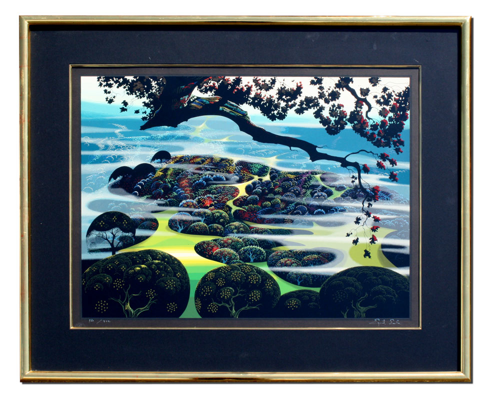 EARLE, Eyvind, (American, 1916-2000): ''Mystic Mountain'', Serigraph, sight size 28'' x 36'', signed, numbered 360/402, custom gilded frame, 40'' x 47''.
