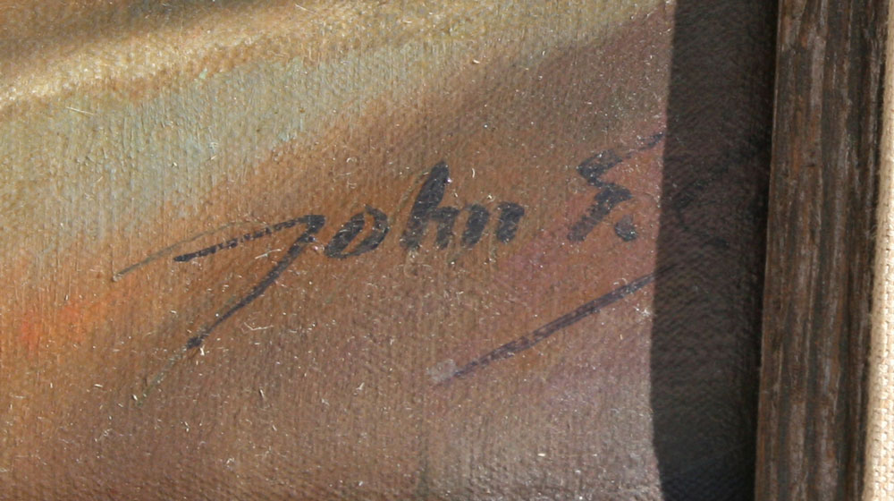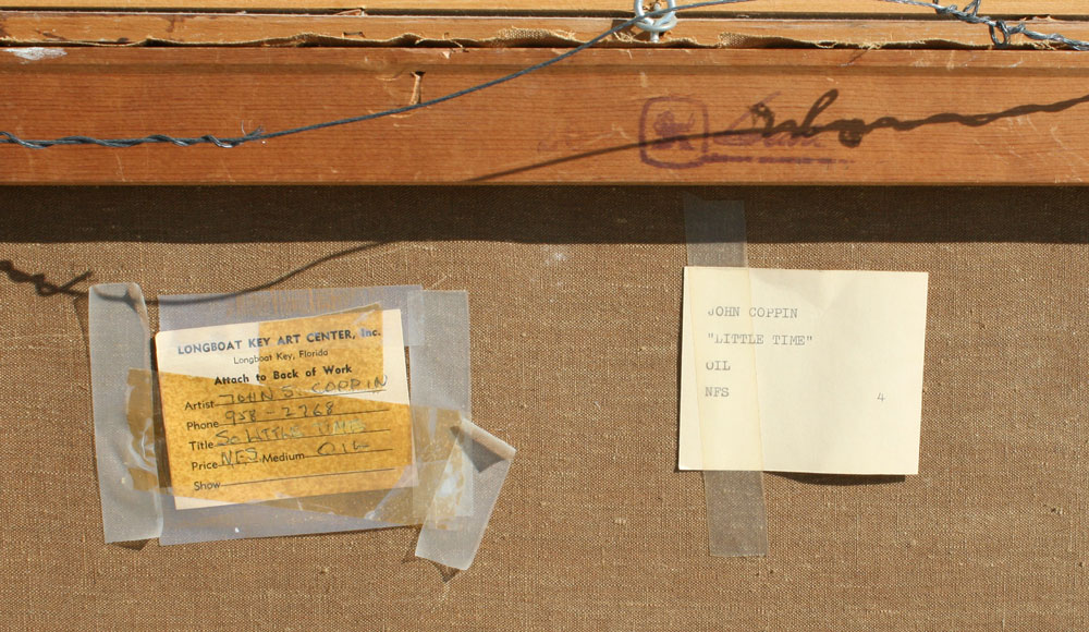 COPPIN, John Stevens, (American, 1904-1986): ''Little Time'', OIL/Canvas, 24'' x 20'', signed, Longboat Key Art Center label affixed verso, signed on canvas 'painted in 1951 in Scarab Club studio', carved wood frame, 32'' x 28''.