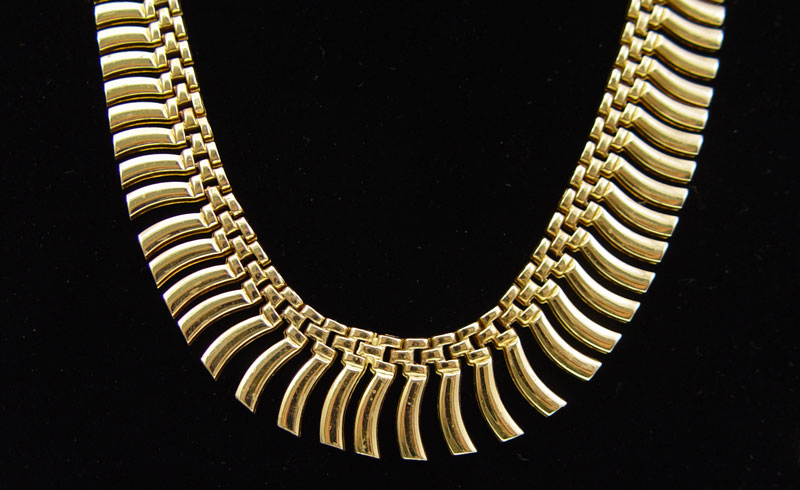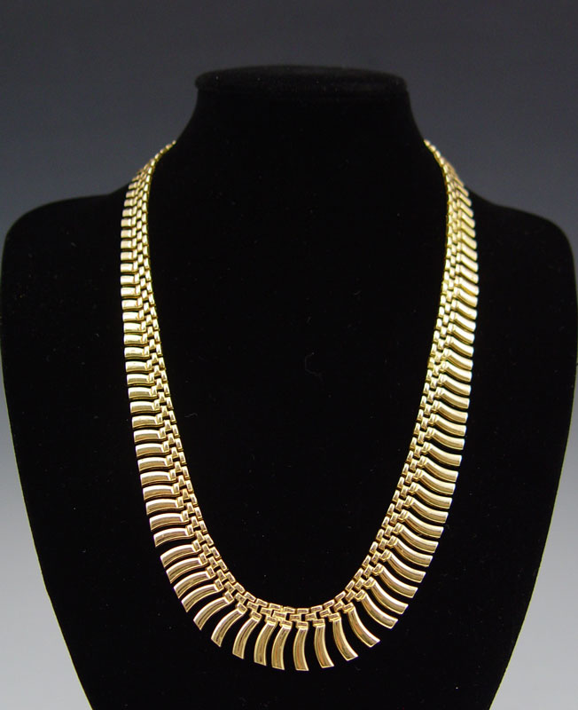 14K CLEOPATRA NECKLACE: 14K yellow gold Cleopatra style necklace. Overall length: 18'' Weight: 30.7 grams.