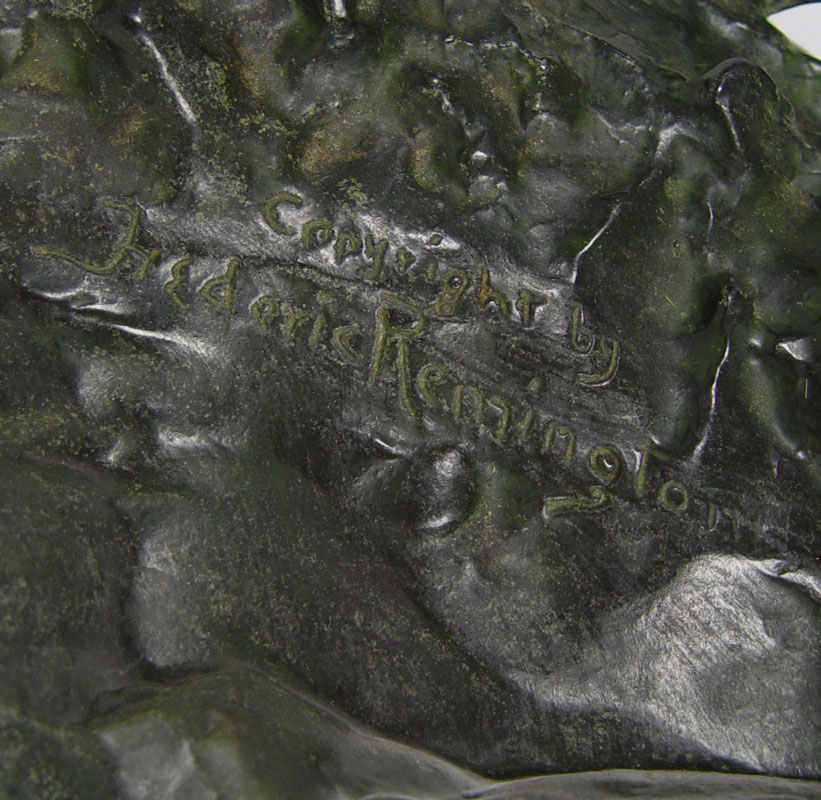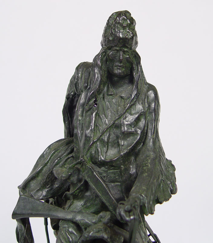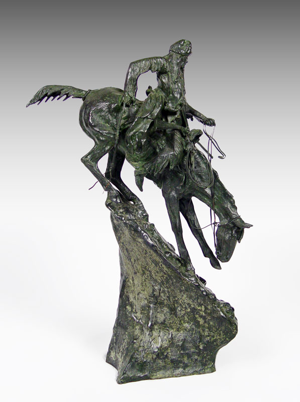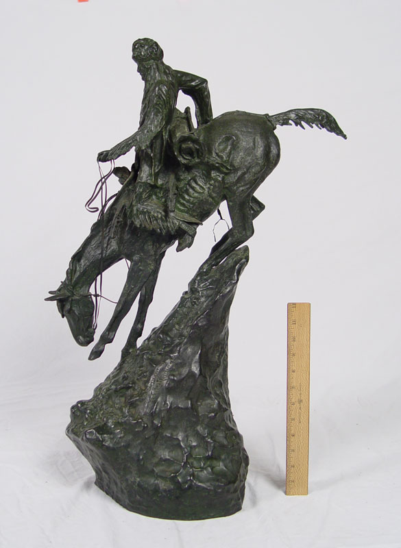 LARGE IMPRESSIVE BRONZE AFTER REMINGTON TITLED MOUNTAIN MAN: 28'' X 23'' X 18'' X 9''.