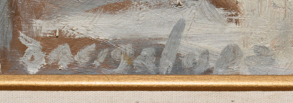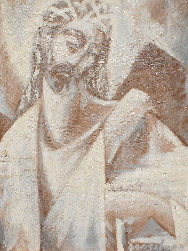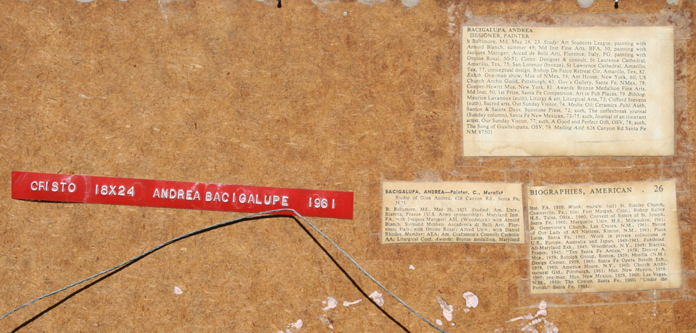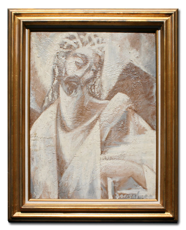 BACIGALUPA, Andrea, (American, 1923-): ''Christo'', Jesus Christ, OIL/Masonite, 24'' x 18'', signed, several biographies affixed verso, label indicates date of 1961, framed 30'' x 24''.