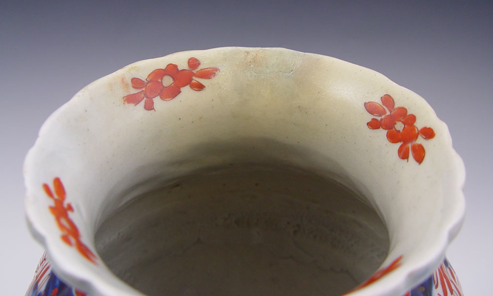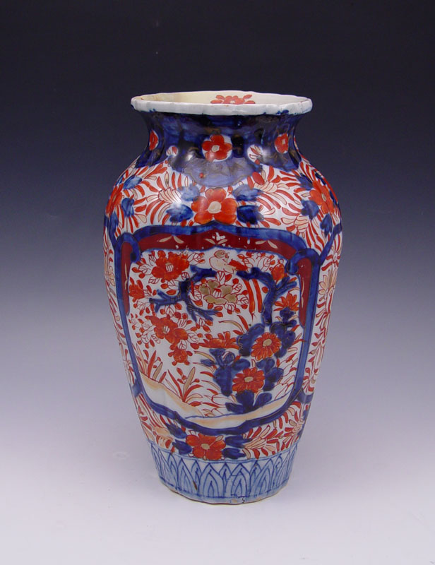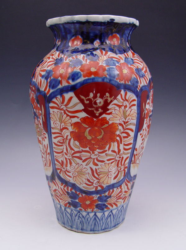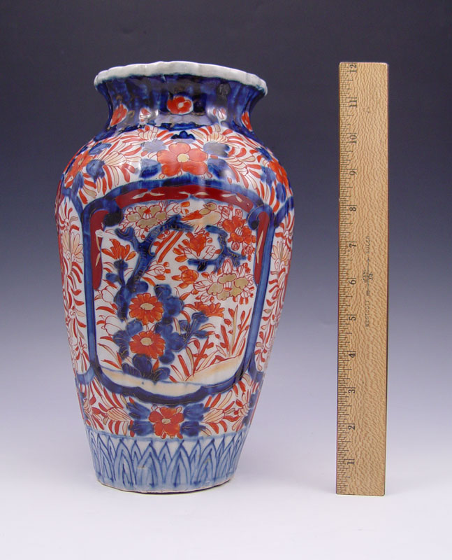 JAPANESE IMARI VASE: Iron red and cobalt blue decoration, 12'' tall.