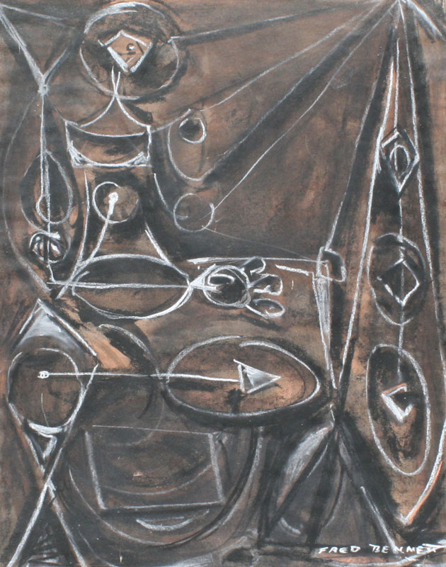 BENNETT, Fred, (American, 20th C): Abstract Composition, Mixed Media, sight size 23 x 18 1/4'', signed, framed without glass, 32'' 1/2 x 26 1/2''.