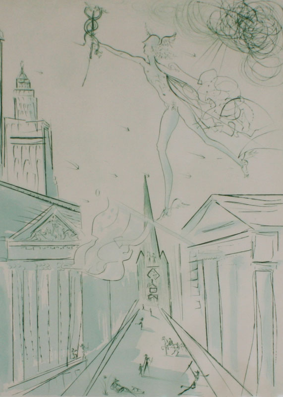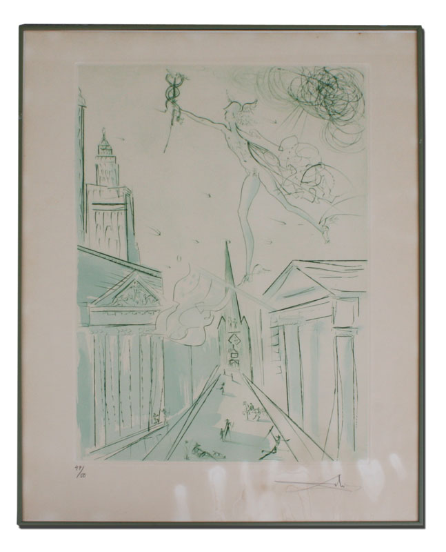 DALI, Salvador, (French/Spanish, 1904-1989): Mercury, Etching, 30'' x 22'', pencil signed, numbered 47/50, line stamp lower right, metal frame, 31'' x 23''. From the collection of Banana George Blair. From the collection of Banana George Blair.