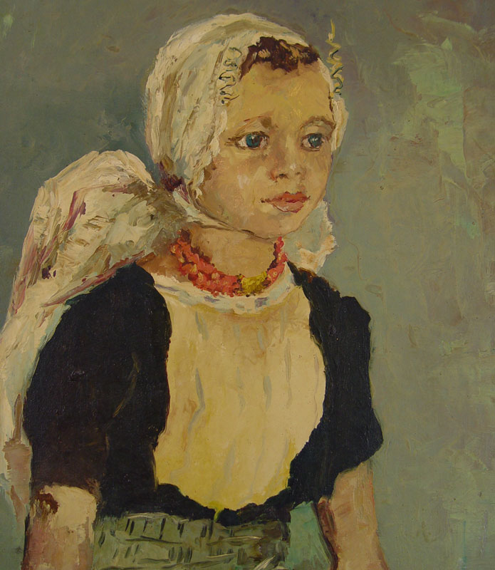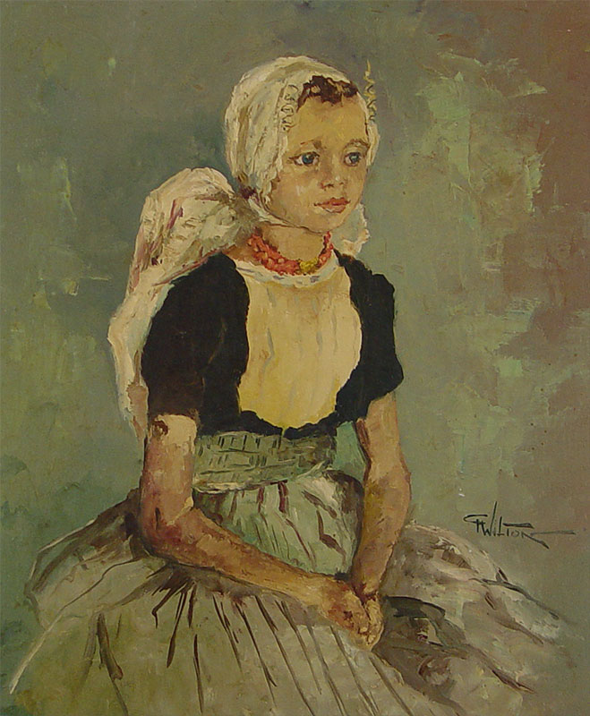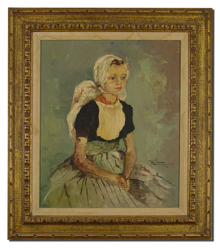 ILLEGIBLY SIGNED PAINTING OF DUTCH GIRL: ''Girl from Zeeland, Holland'', OIL/Canvas, 24'' x 20'', G.H. Wilton?, carved and gilded frame, 33'' x 28 1/2''.