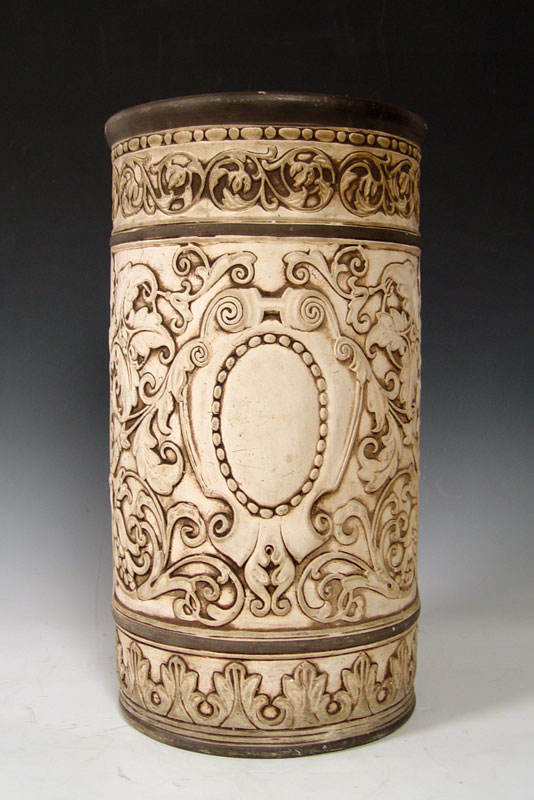 WELLER POTTERY CLAYWOOD UMBRELLA STAND: 19 1/2'' h. x 11''.