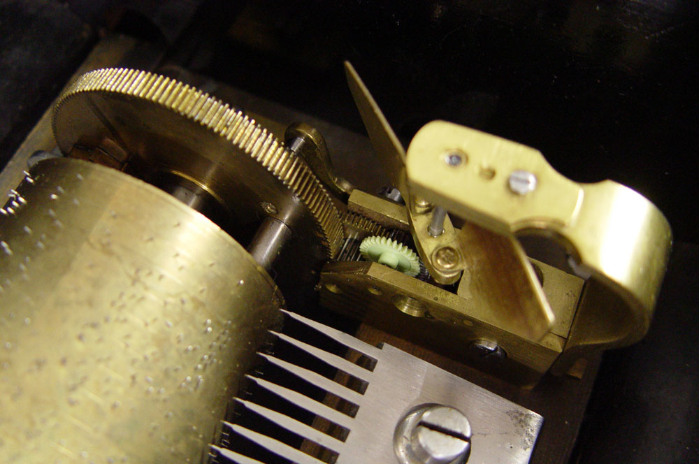 CONDITION: Note areas of wear to finish, 2 teeth have tips missing, roll pegs have bends and blunted.