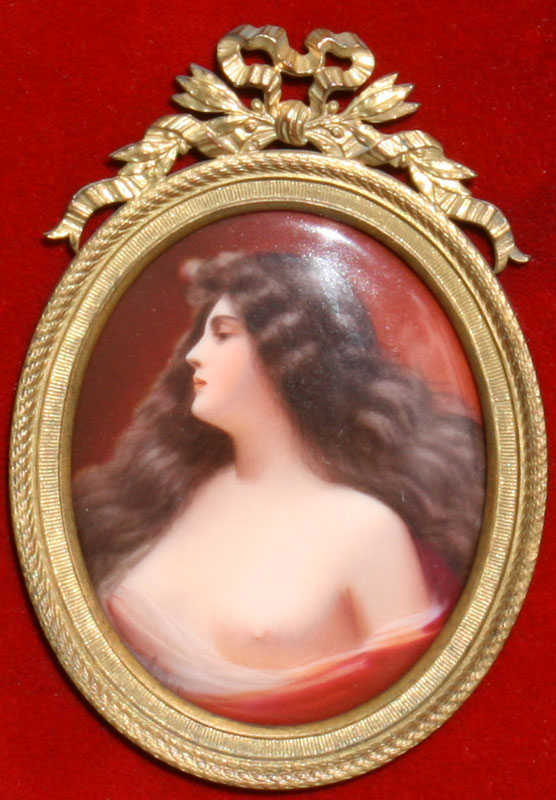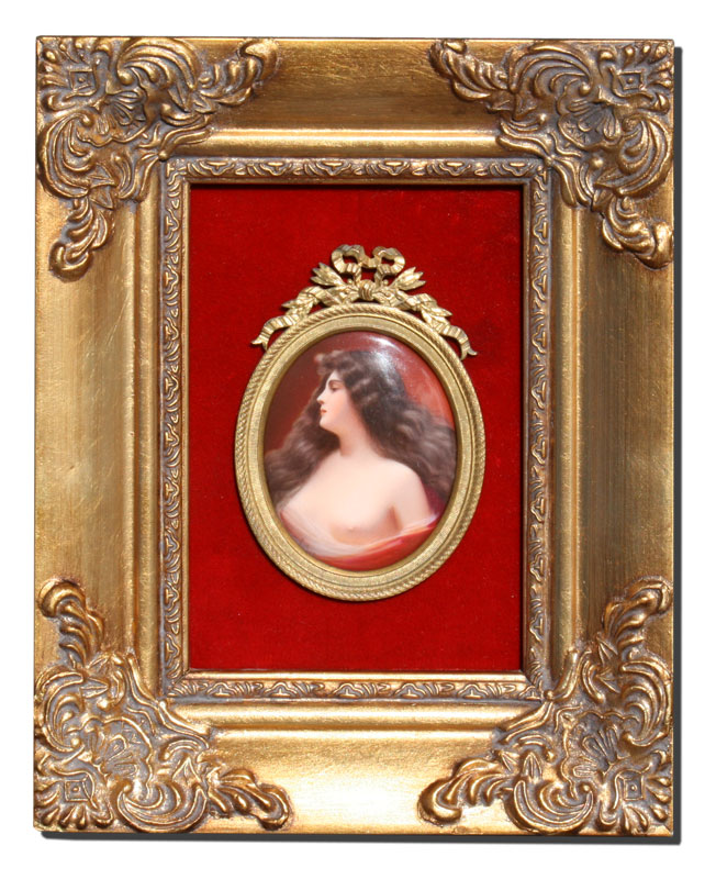 MINIATURE ON PORCELAIN AFTER ASTI: Approximately 3 1/4'' x 2 1/2'', more contemporary in nature, encased in a gilded frame, 10 1/2'' x 8 1/4''.