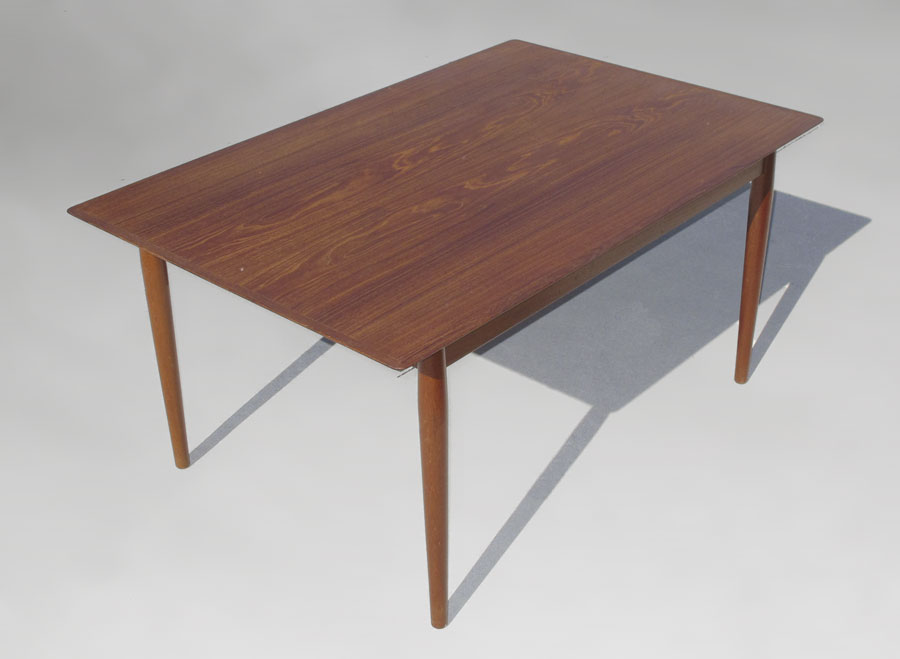 ARNE VODDER DANISH MODERN DINING TABLE: Two self-storing leaves. 28 3/4'' h. x 60 1/2'' x 39 3/4''. 2 leaves 22 1/4''.