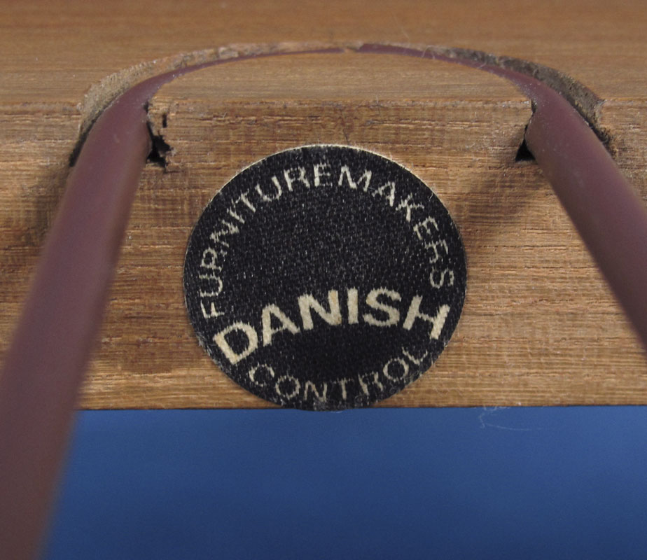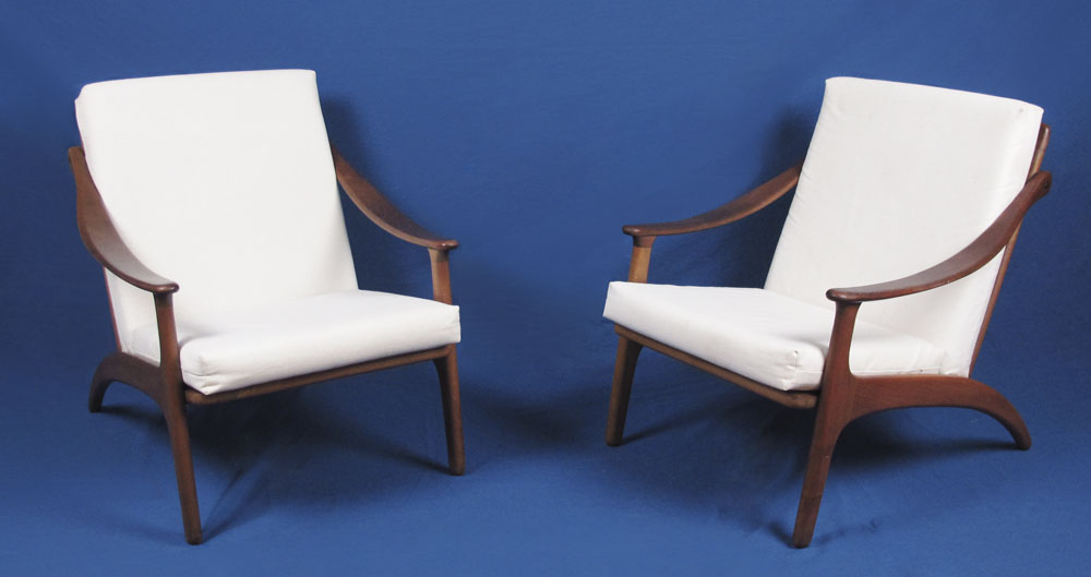 PAIR DANISH MODERN OPEN ARMCHAIRS: Removable cushions with linen slip covers. Danish control sticker. 29'' h. x 26'' x 28 1/2''.