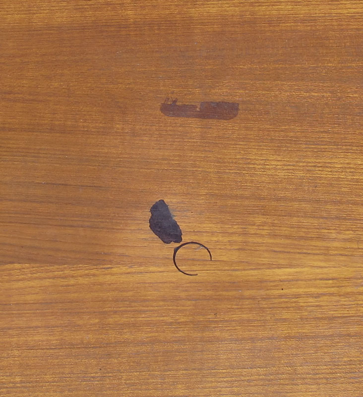 CONDITION: Note ink stains, replaced front rail, scratches on desk, seat loose on chair. Both pieces will require restoration.