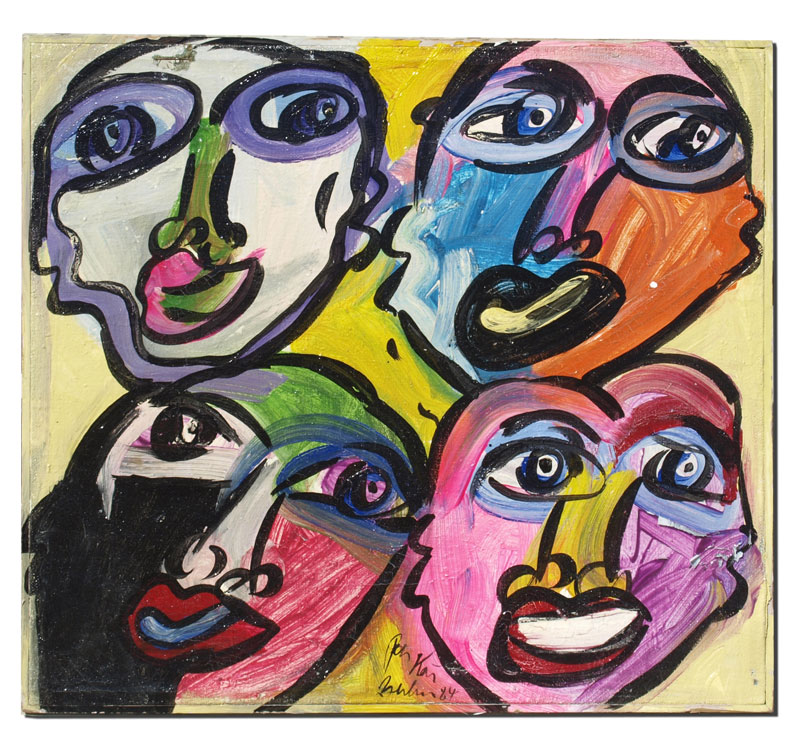 KEIL, Peter, (German, 1942 - ): ''Four Faces'', Oil/Canvas, 35'' x 39 1/2'', signed and dated 84 Berlin, framed, 36'' x 41''.