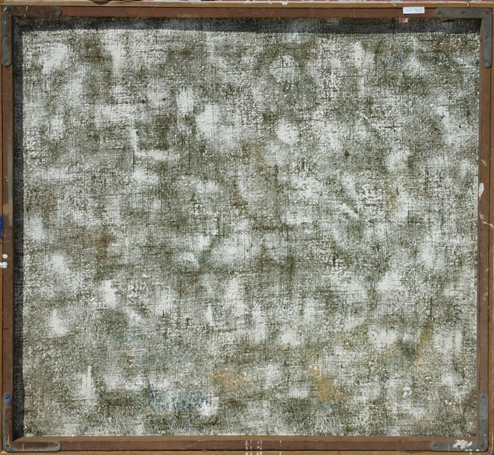 CONDITION: Several scattered abrasions with paint loss, cracklure lower right with paint loss, puncture lower right margin and upper left corner.