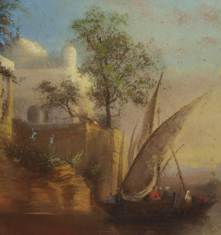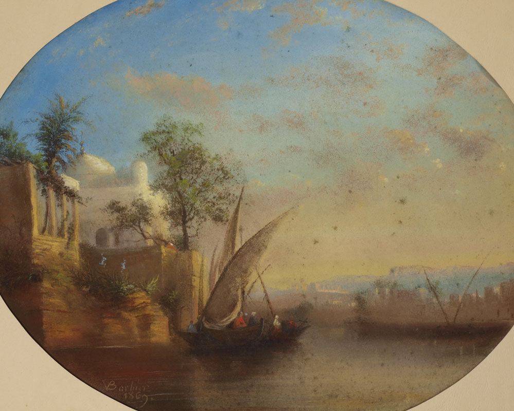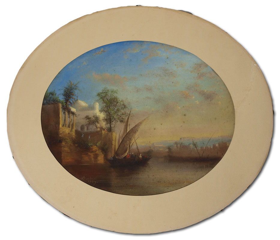 BARBIER, V., (European, 19th C.): River Scene Outside the City, 12 1/4'' x 15 1/4'', signed and dated 1869, matted, 18 1/2'' x 21 1/4'', unframed.