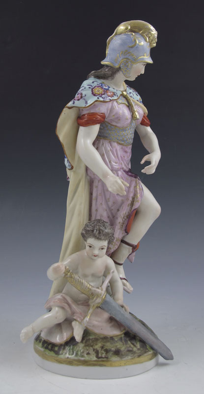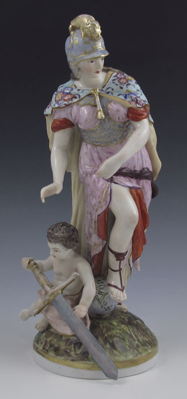 KPM PORCELAIN ATHENA AND BABY FIGURINE: Incised blue KPM under glaze, 10 1/2''