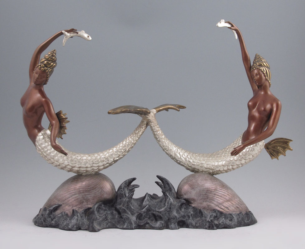 ERTE ''SIRENS'' BRONZE: 11 1/2'' h x 16'' w, incised signature, Chalk and Vermillion, Sevenarts stamped, dated 1988, numbered 329/375.