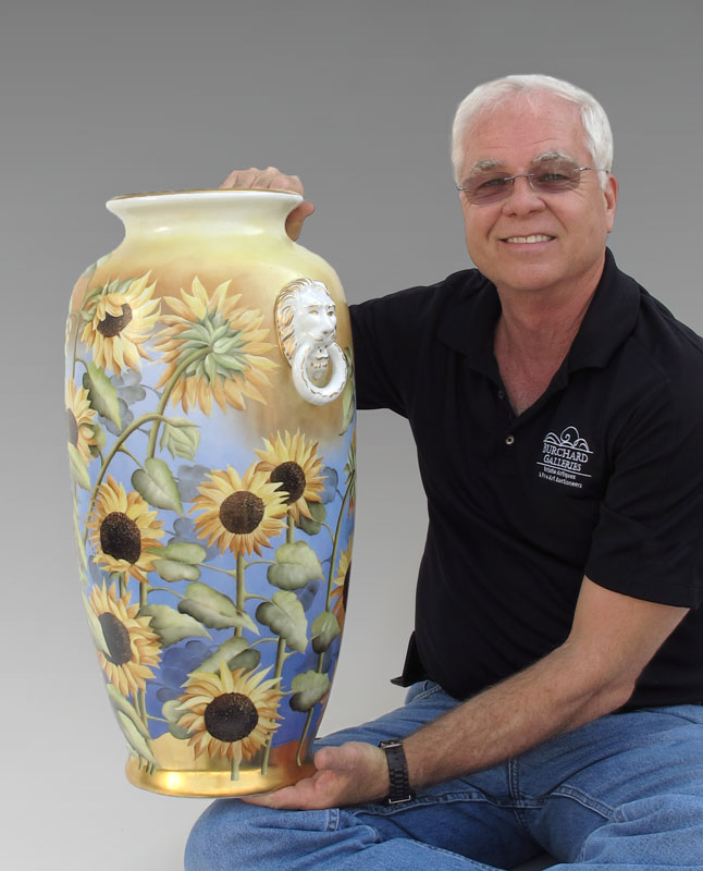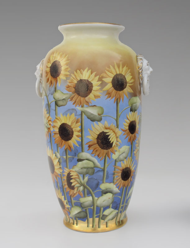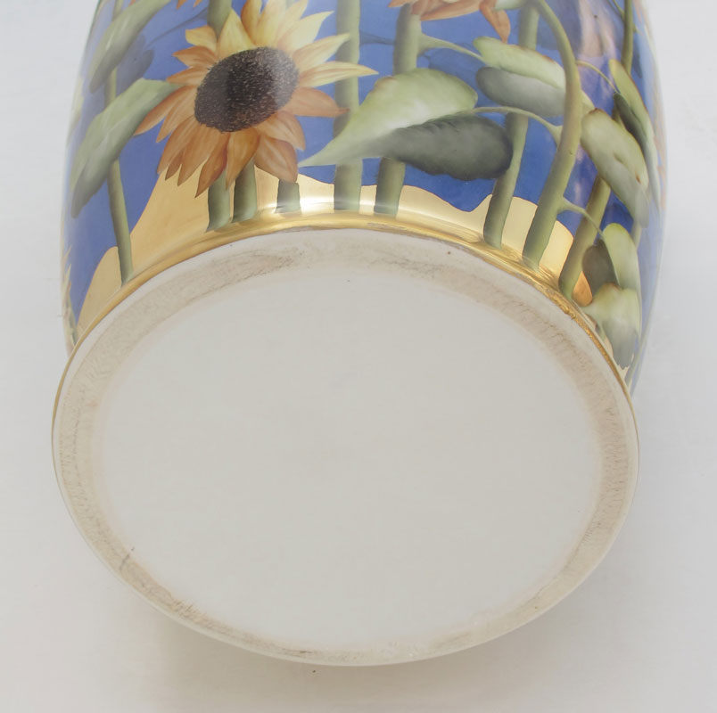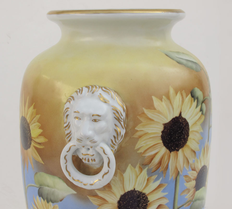 SALDARRIAGA, Maria (American 20th C): Handpainted porcelain Sunflower vase, approx. 25'' tall.