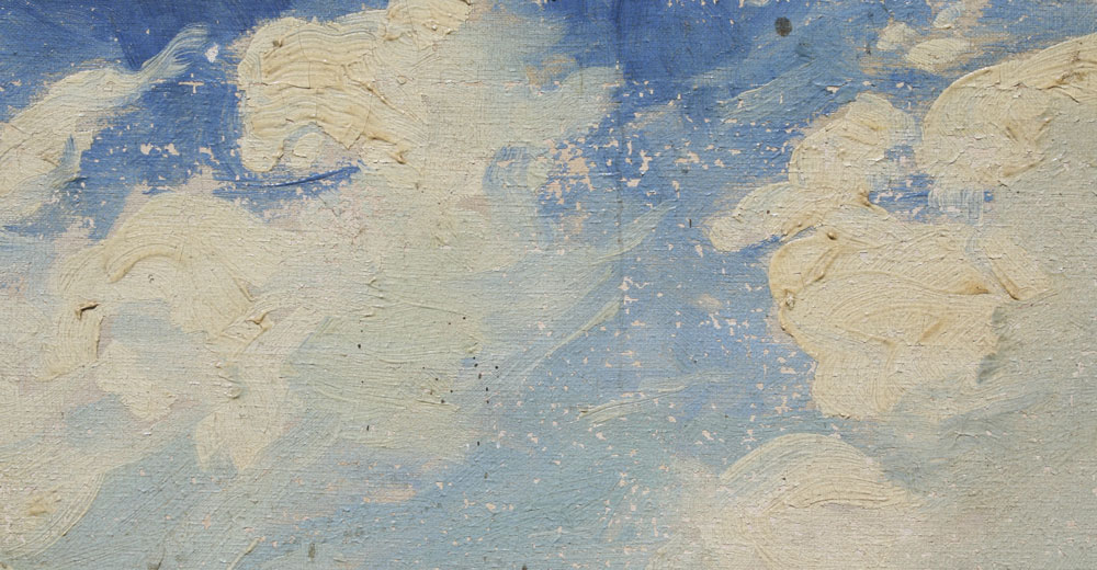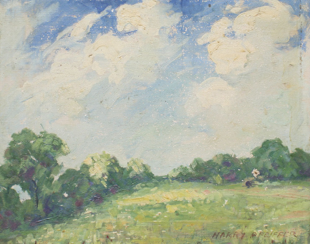 PFIEFFER, Heinrich Harry, (American, 1874-1960): Pastoral Landscape with Open Field and White Billowing Clouds Against a Blue Sky, Oil/Canvas, 16'' x 20'', signed, encased in custom period gilded and carved fine framing with minor wear, 21 1/2'' x 25 1/2''.