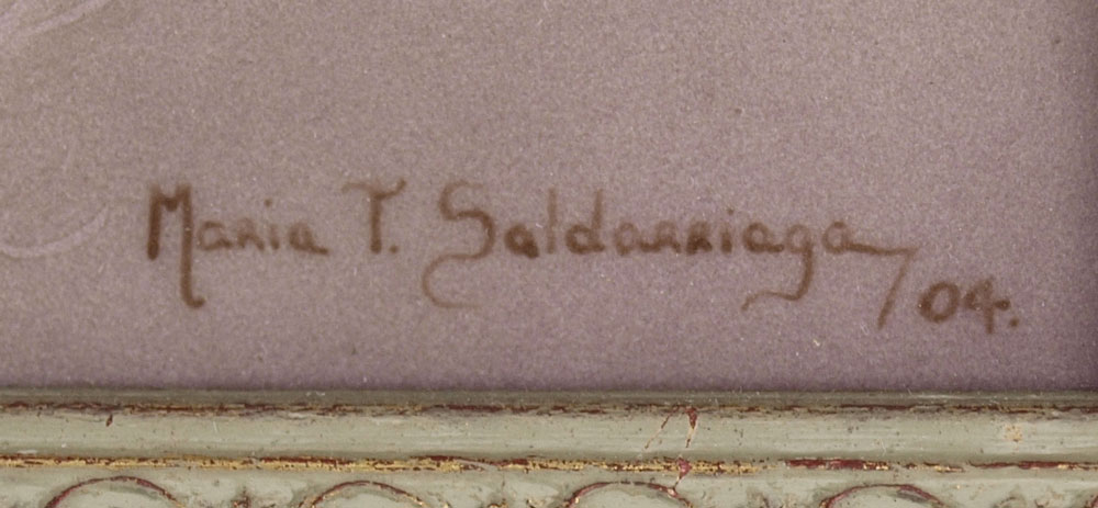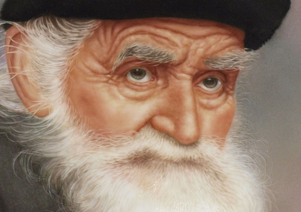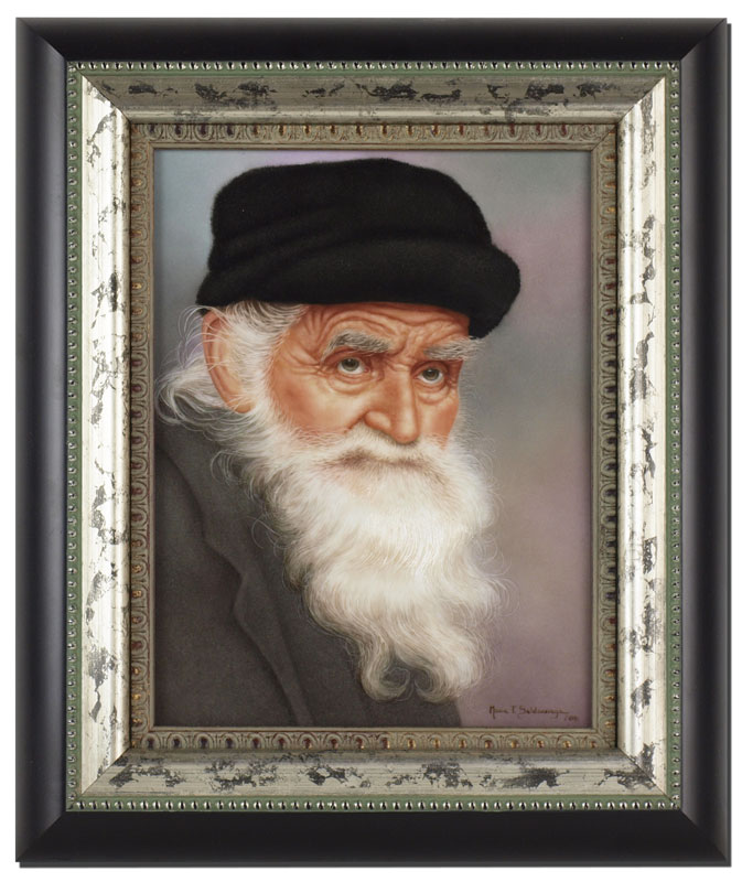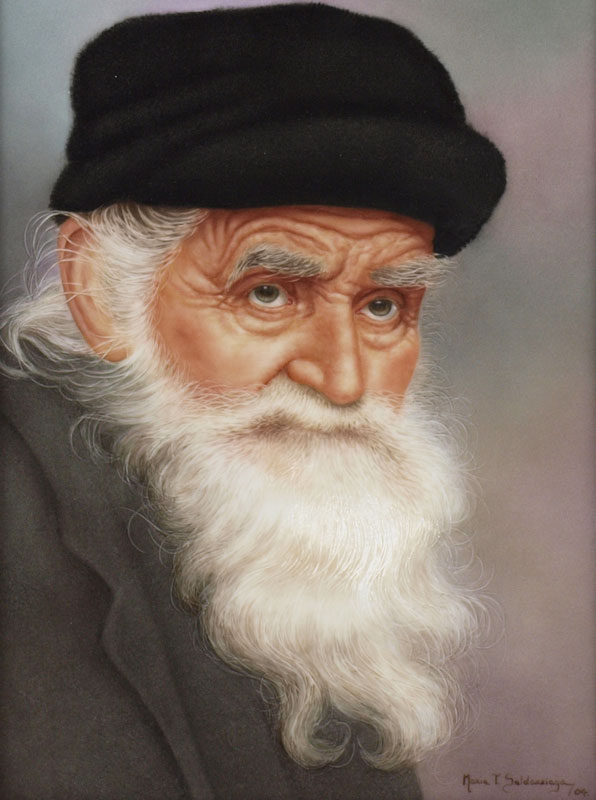 SALDARRIAGA, Maria, (American 20th C): Portrait of an Elderly Man with White Beard and Black Hat, Painting on Porcelain, sight size 9'' x 7'', signed lower right, dated '04, framed, 13 1/2'' x 11 1/2''.