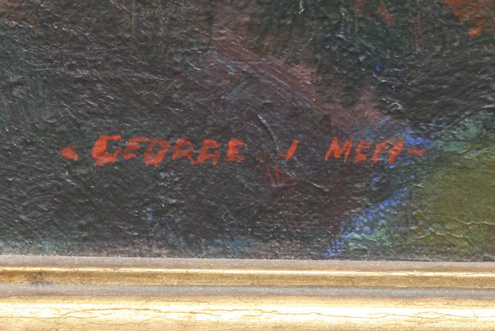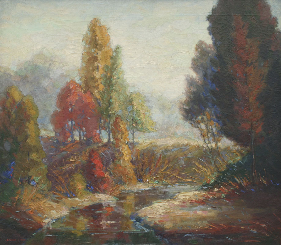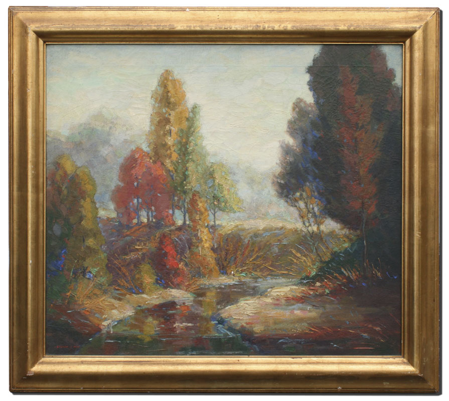 MESS, George Jo, (American, 1898-1962): Autumnal Landscape with Stream, Oil/Canvas, 22'' x 25'', signed lower left, encased in original period gilded frame with wear, 27'' x 30''.